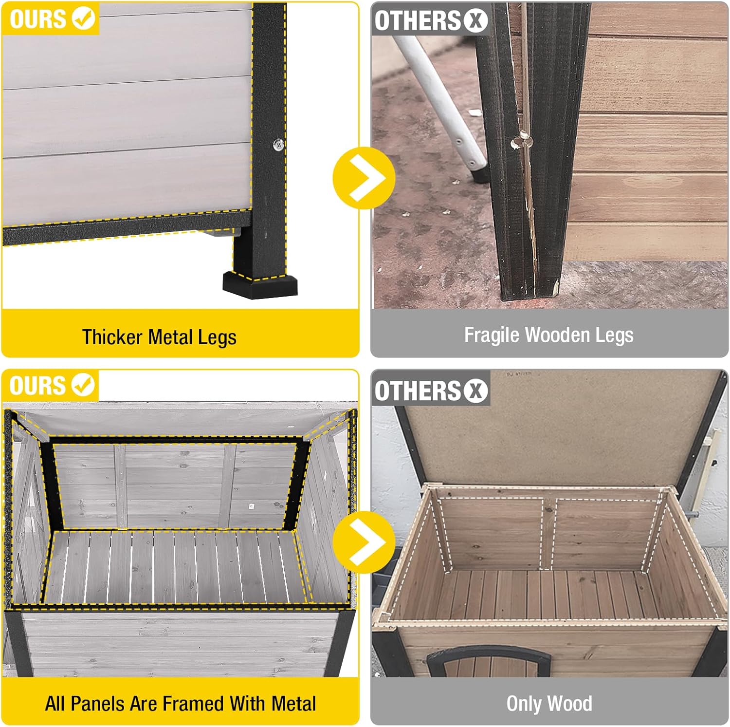 • Weatherproof Structural Design: Our dog house has an airtight protective design and a sloped waterproof roof to prevent dirty water from flowing into the house, protecting your pet from dirt, rain, and snow and keeping the cabin comfortable and dry