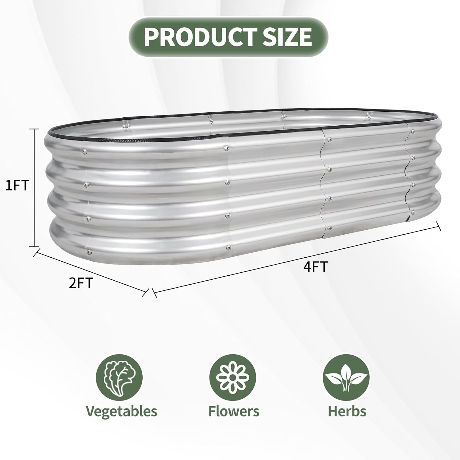 1MORE Galvanized Raised Garden Bed- Planter Garden Boxes Outdoor, Raised Beds for Gardening, 4x2x1ft Metal Garden Bed Kit for Vegetables Flower, Planter Raised Bed with Protective Tape & Tools.Silver
