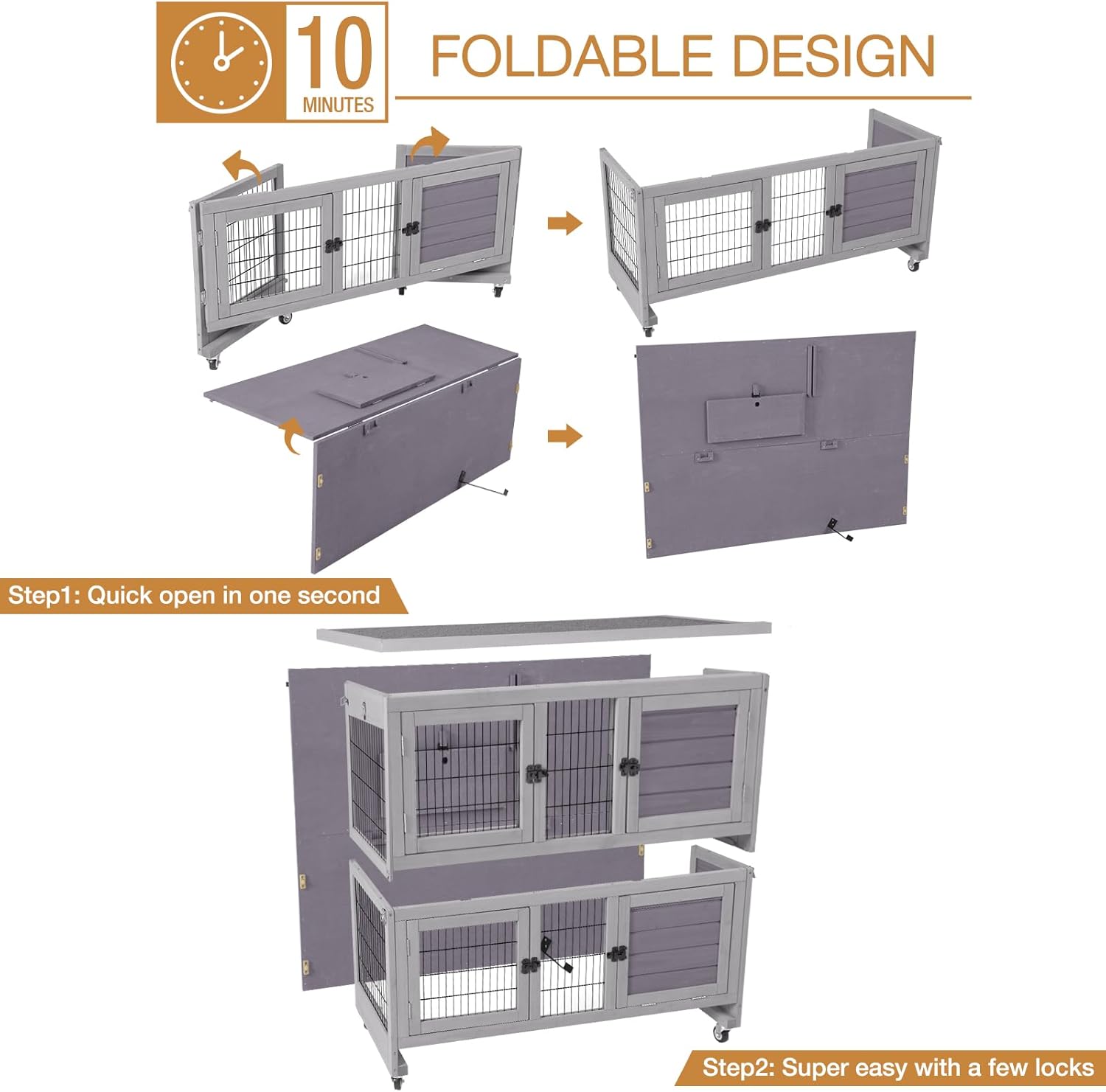 • Folding Rabbit Hutch: Most of the parts were pre-assembled and foldable, super easy to assemble by few steps