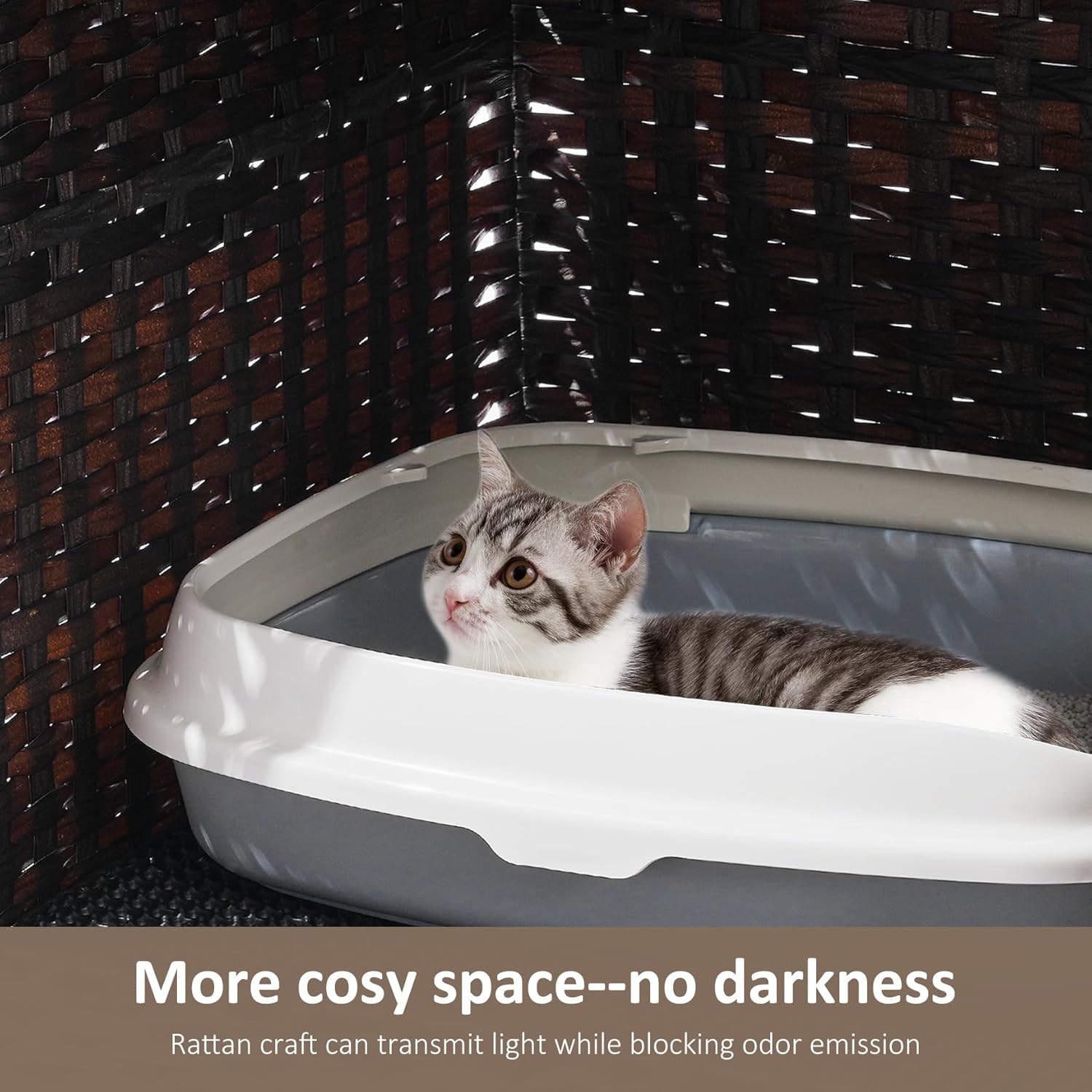 Cat Litter Box Enclosure with Soft Litter Mat; Hidden Cat Washroom Furniture with Door; Handwoven Rattan Cat House; Pet Crate for Living Room, Bedroom, Balcony (Brown)