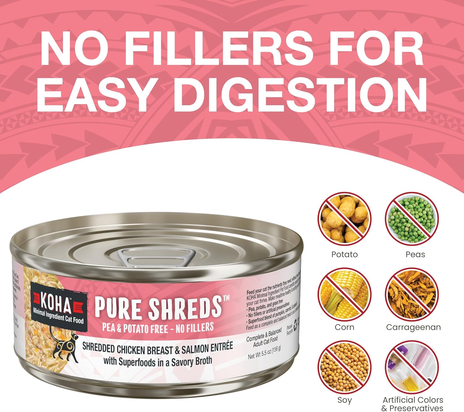 KOHA Pure Shreds Chicken and Salmon Entrée for Cats, High Protein Wet Cat Food, 2.8oz Cans (Pack of 24)