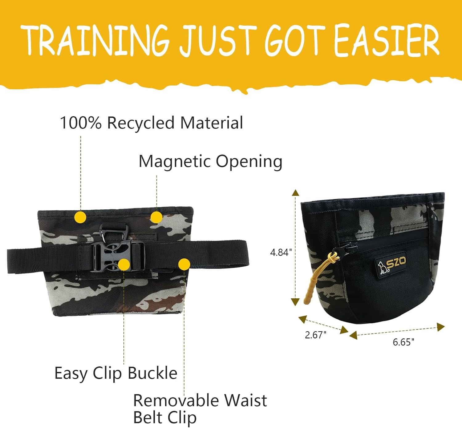 SZO Dog Treat Pouch with Pet Training Clicker, Dog Training Treat Pouch with Waist Belt Clip, Magnetic Closure, Hands-Free Training - Camo