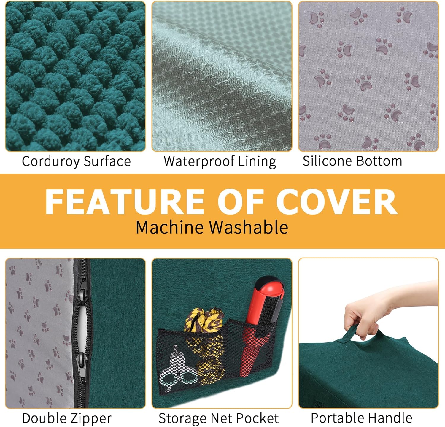 • Waterproof, Washable Cover: The surface of the cover is made of corduroy, the bottom of the dog paw pattern made of silicone, the sides and back are made of suede, all-round to achieve the effect of non-slip. Cover added waterproof layer to protect the sponge from getting dirty. Even if the pet accidentally pee on the dog ladder, will not leave a mark on the sponge. Only need to clean the cover can be. Cover can be machine washed.