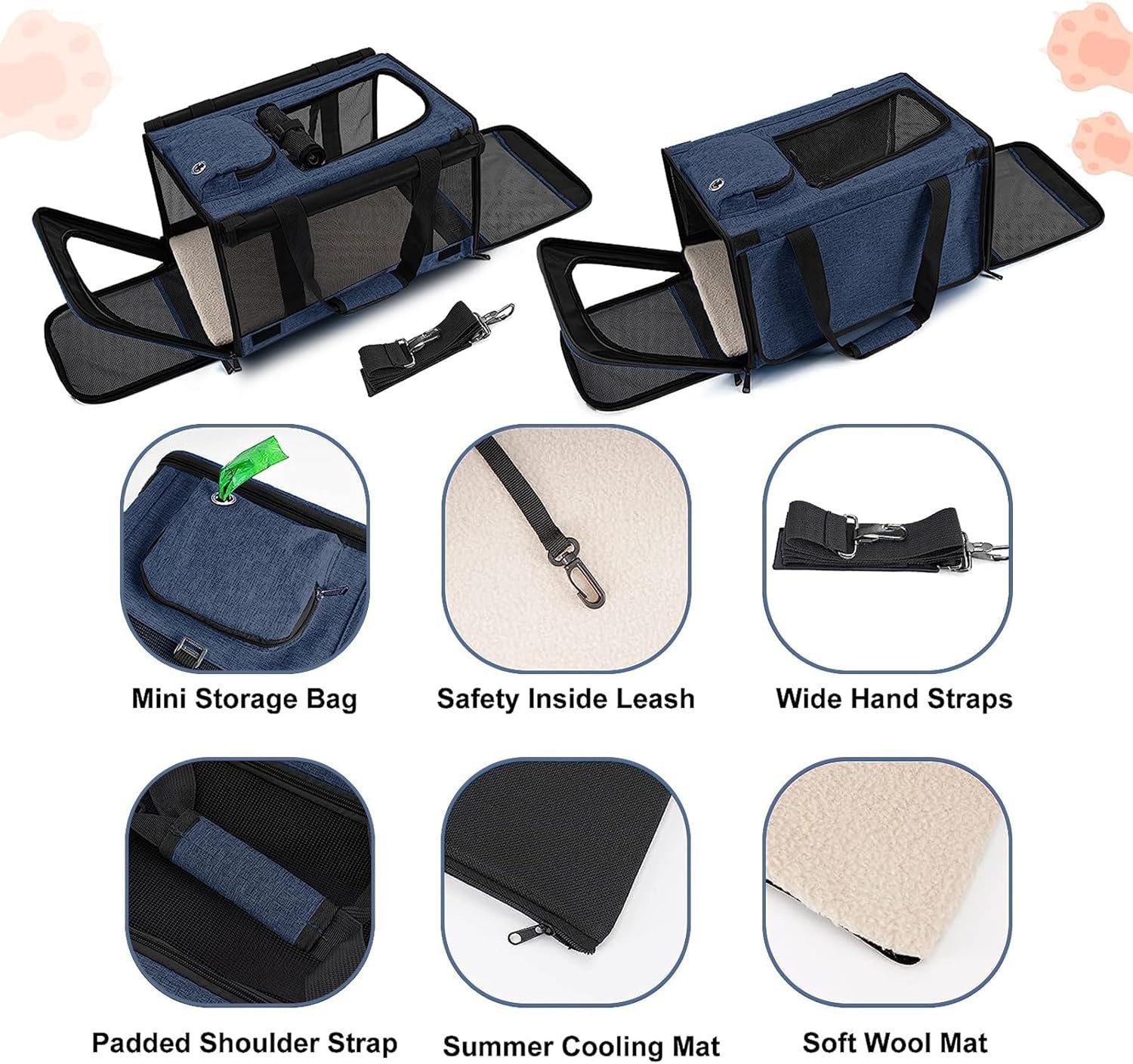 Medium Cat Carrier Large Cat 15 lbs+ Soft Pet Carrier Small Puppy/Ventilated 2 Kittens Car Travel Bag Case/Comfy Big Maine Coons 25 Pounds/Soft-Sided Mesh Kitty Products Dark Blue
