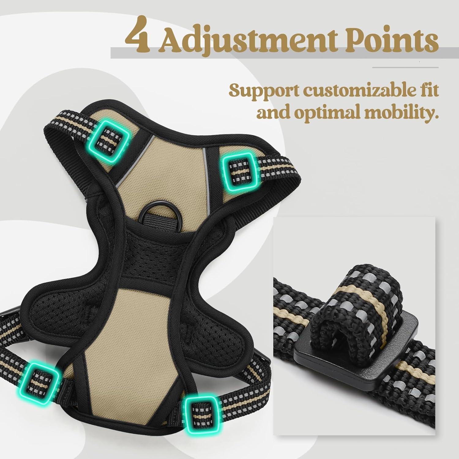 • Fully Adjustable - This adjustable harness features 4 easy adjusting straps around the body. You can use its 2 neck straps and 2 chest straps to create a perfect fit for your dog with some room of growth. No worries about slipping out or choking