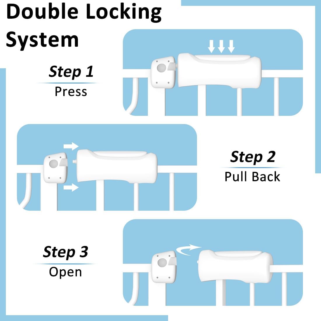 • Safety gate for baby - Designed with your child's safety in mind, this baby gate features a sturdy construction, thick steels and reliable locking mechanism. Our baby gates effectively keeps your child safe from hazardous areas while allowing you peace of mind as they explore their surroundings