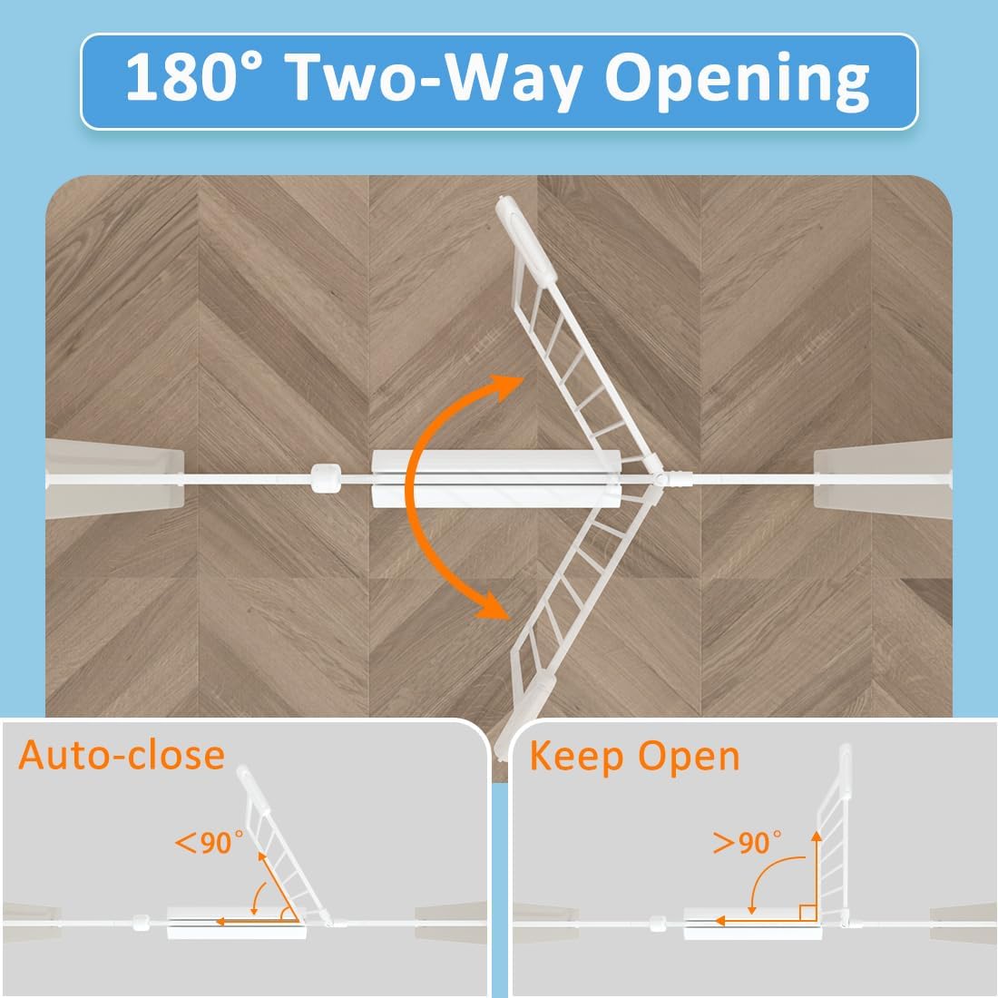 • 180° automatic opening and closing - The innovative 180° automatic opening and closing feature allows for effortless access. Simply push the dog gates for doorways to open, and it will gently close behind you, providing convenience for busy parents while ensuring the safety of your child