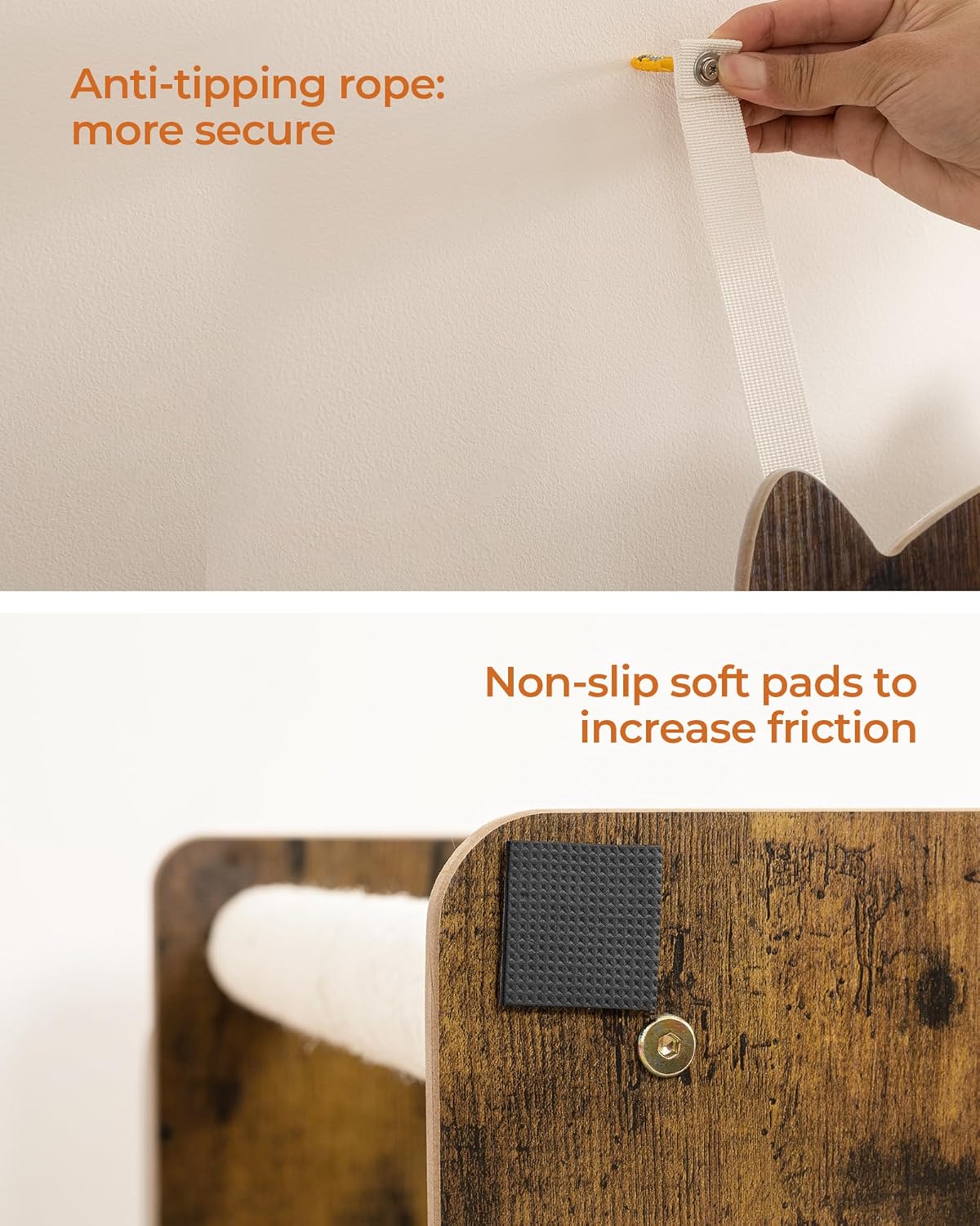 • Sturdy, stable and safe: with smooth veneer particle board for durability, an oversized base with non-slip mats, pure metal components and anti-tip kits, and then a selection of the most stable triangular structures, this cat scratching tree provides a safe habitat for your cats