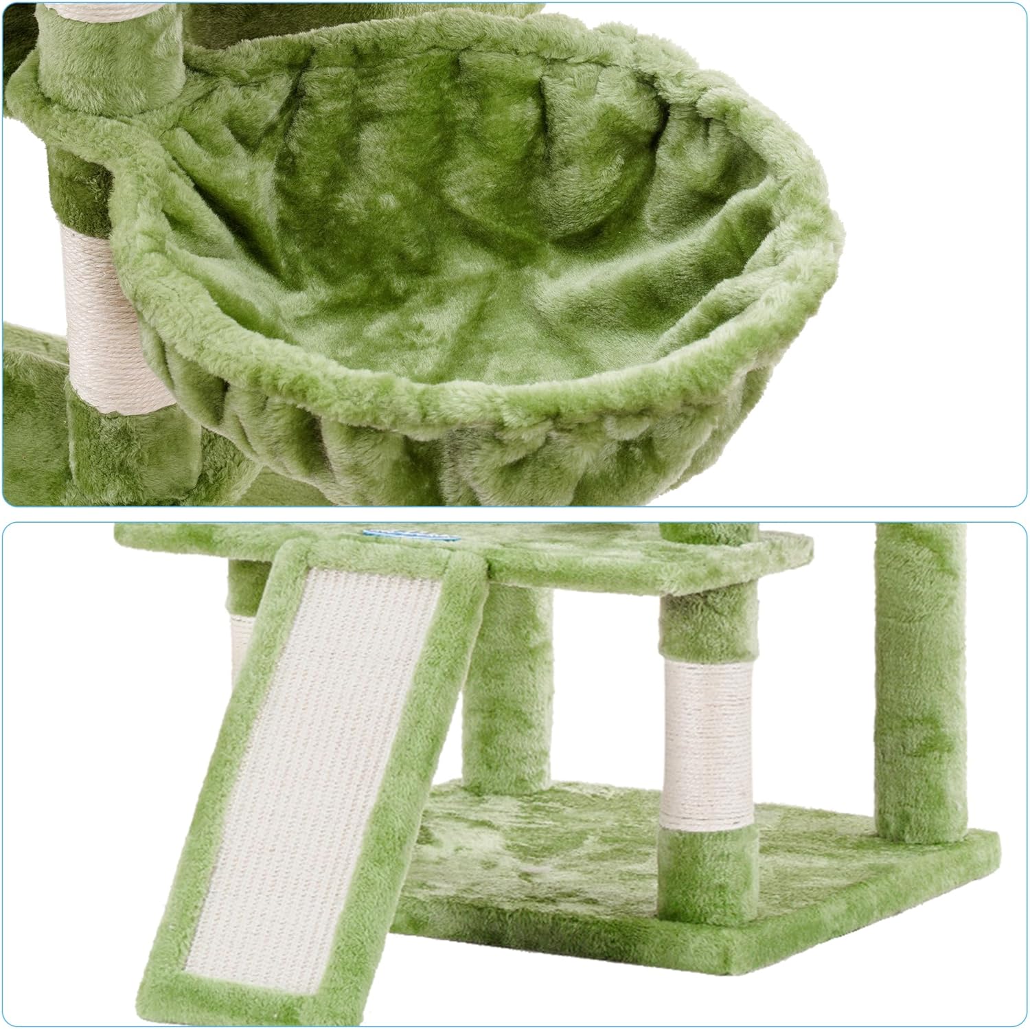 Hey-brother Cat Tree, 71 inches XL Large Cat Tower for Indoor Cats, Multi-Level Cat House with 3 Padded Perches, Big Scratcher, Cozy Basket, 2 Cat Condos and Scratching Posts, Green MPJ034GR