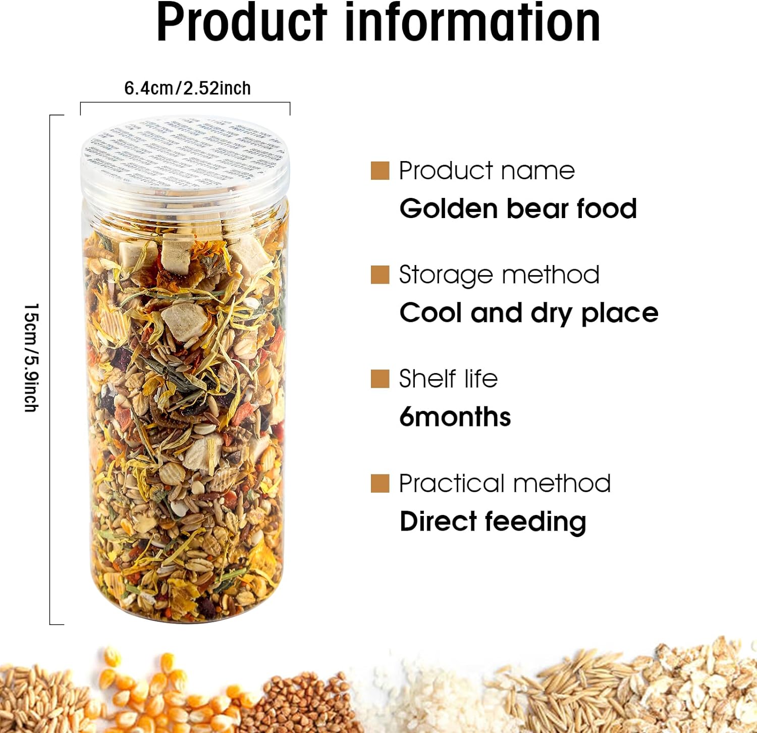 • Nutritious Blend: 9.52 oz (approx. 270g) The hamster treats formula includes a balanced mix of seeds, proteins, grains, Plant-based, and a complete and wholesome diet for your furry friend, to support health and digestion