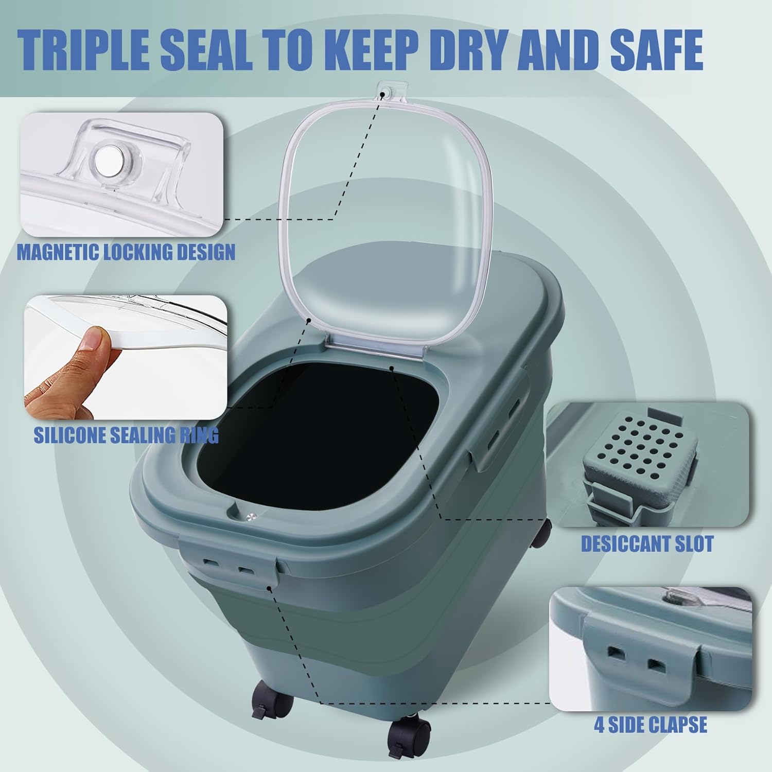 - 🐶【Removable Wheels】Are you tired of struggling with the unwieldy weight of heavy pet food bags? Our dog food containers are carefully designed with four detachable wheels. Imagine being able to effortlessly slide your pet's food container through different rooms in your house, or take it outdoors for a picnic with your beloved furry friend. It was a wonderful feeling!
