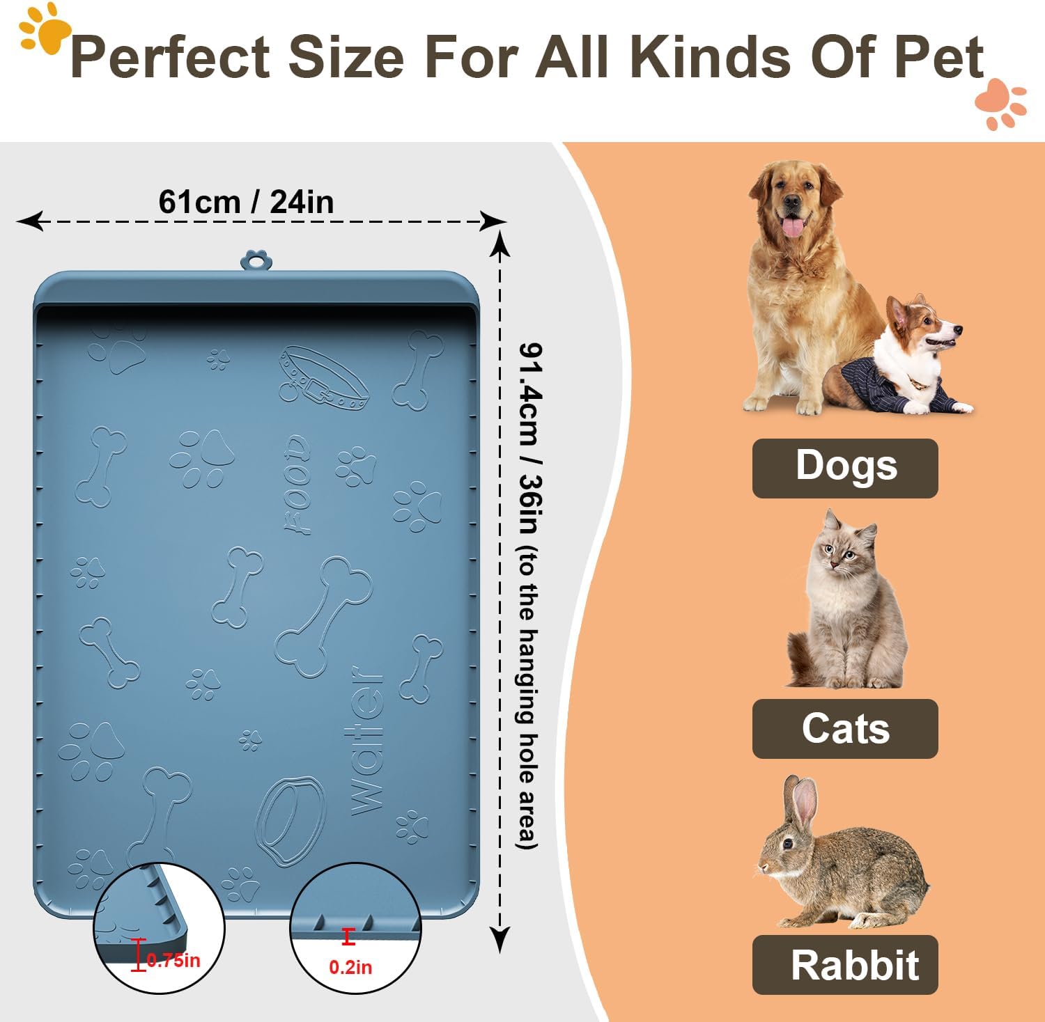 • 🐾〖Perfect Size〗: This 36”x24”x0.75" large sizes of dog mat is perfect for most medium and large dogs or multiple pets,which can hold cats and dogs'bowl, dish, feeder, or drinking fountain to keep your floor free of any mess!