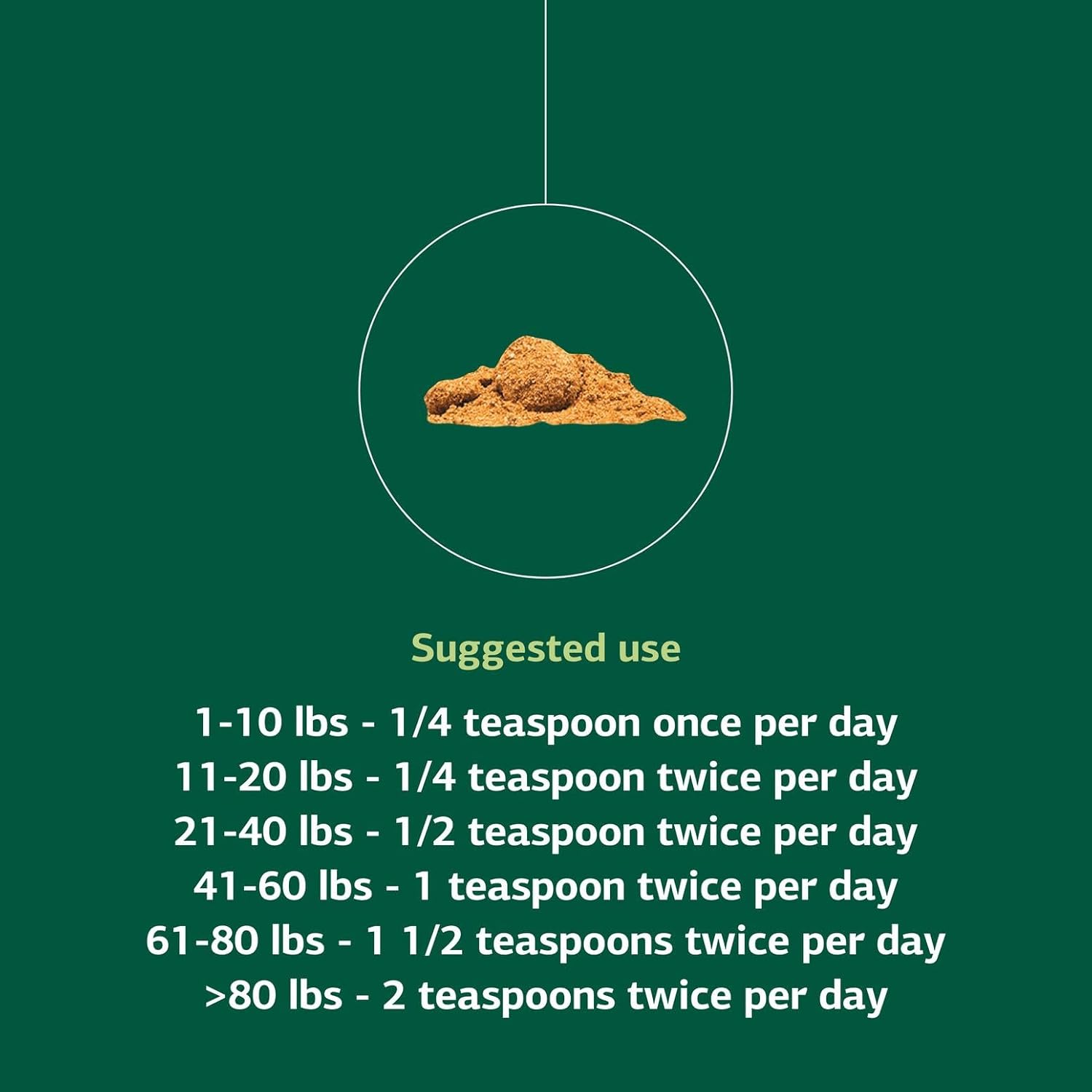 • Supplement Measurement & Dosing: Includes a 1/8 teaspoon scoop for small bottles and a 1/2 teaspoon scoop for large bottles for an accurate dosage based on your dog's weight
