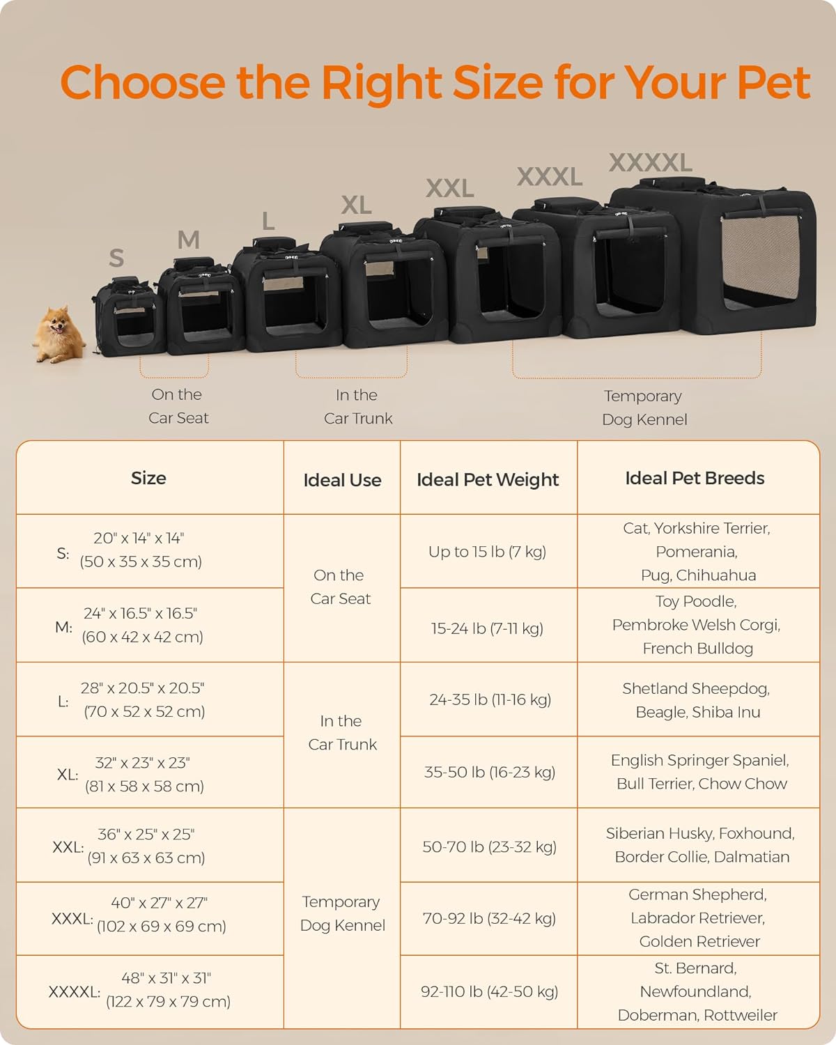 • 【CHOOSE THE RIGHT SIZE】This 48" x 31" x 31" collapsible dog carrier is ideal for pets between 92-110 lb. Please read our tips on the pictures to measure your pet and choose the right size