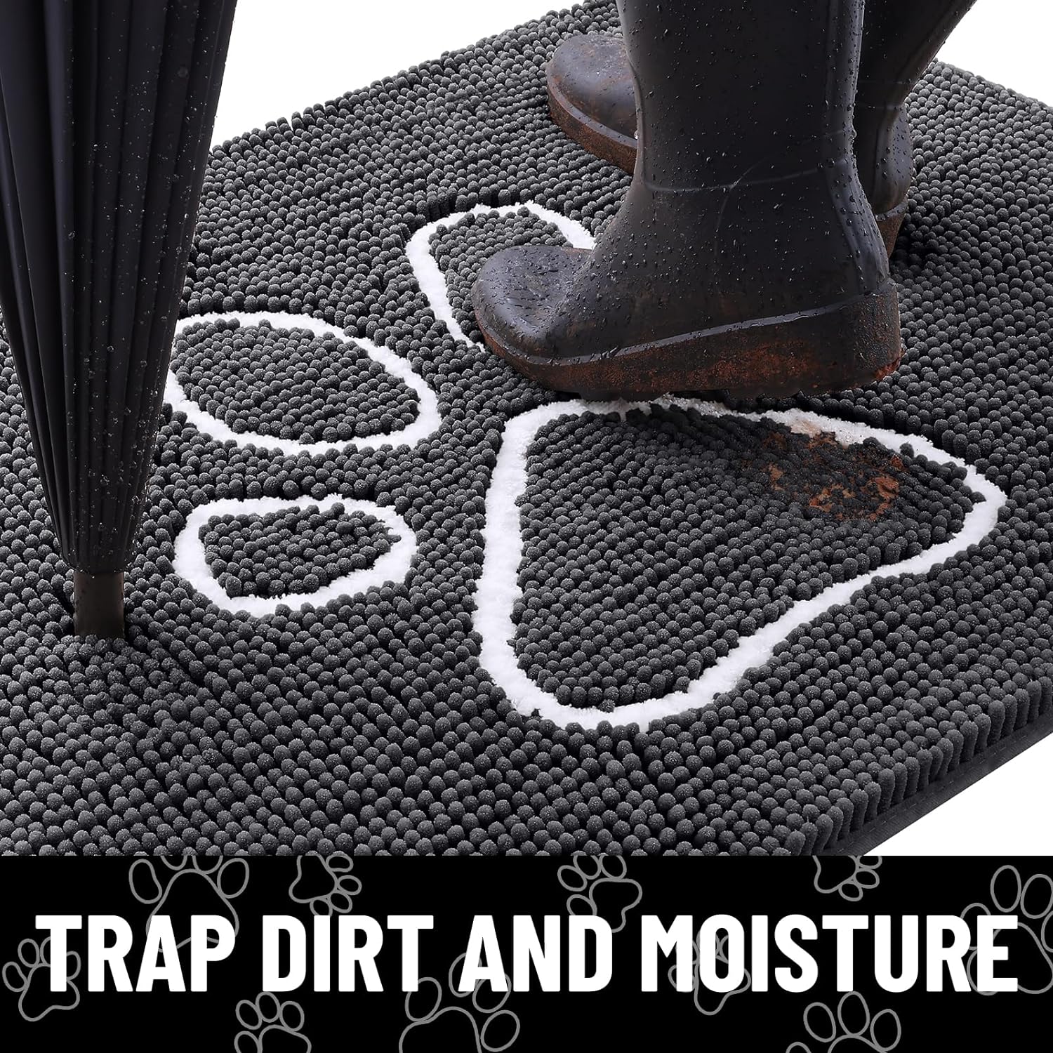 Smiry Dog Door Mat for Muddy Paws, Absorbent Dirt Trapper Non Slip Quick Dry Washable Chenille Mat for Mud Dogs, Entry Rug for Indoor and Outdoor (30x20 Inches, Dark Grey and White)