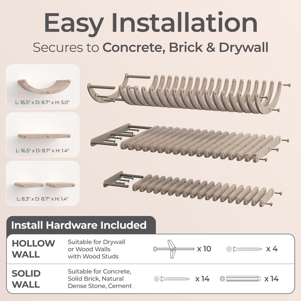 • Effortless Paradise: This cat playground includes all installation hardware, allowing your fur-baby to start exploring right away. Our cat climbing shelves securely attach to concrete, cement, brick, dry wall and more ensuring your cat’s safety.