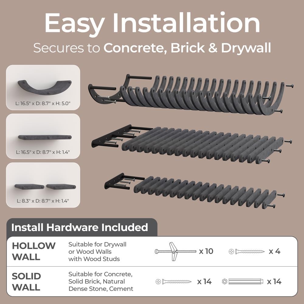 • Effortless Paradise: This cat playground includes all installation hardware, allowing your fur-baby to start exploring right away. Our cat climbing shelves securely attach to concrete, cement, brick, dry wall and more ensuring your cat’s safety.