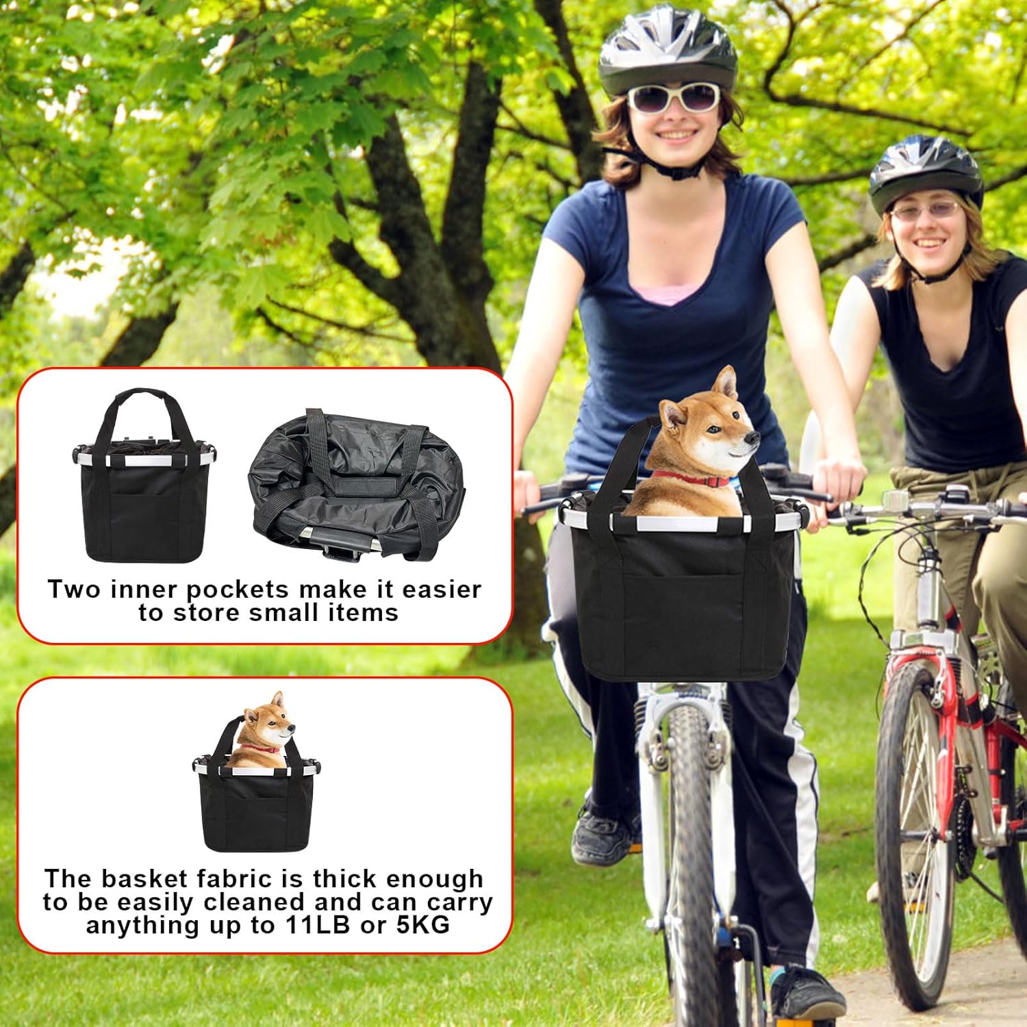 • 【Waterproof Material】: Our dog bike basket is made of wear-resistant oxford fabric with a waterproof coating inside, so you won't be afraid of getting wet even when you ride in the rain. It has a strong carrying capacity of up to 11 pounds, perfect for transporting items.