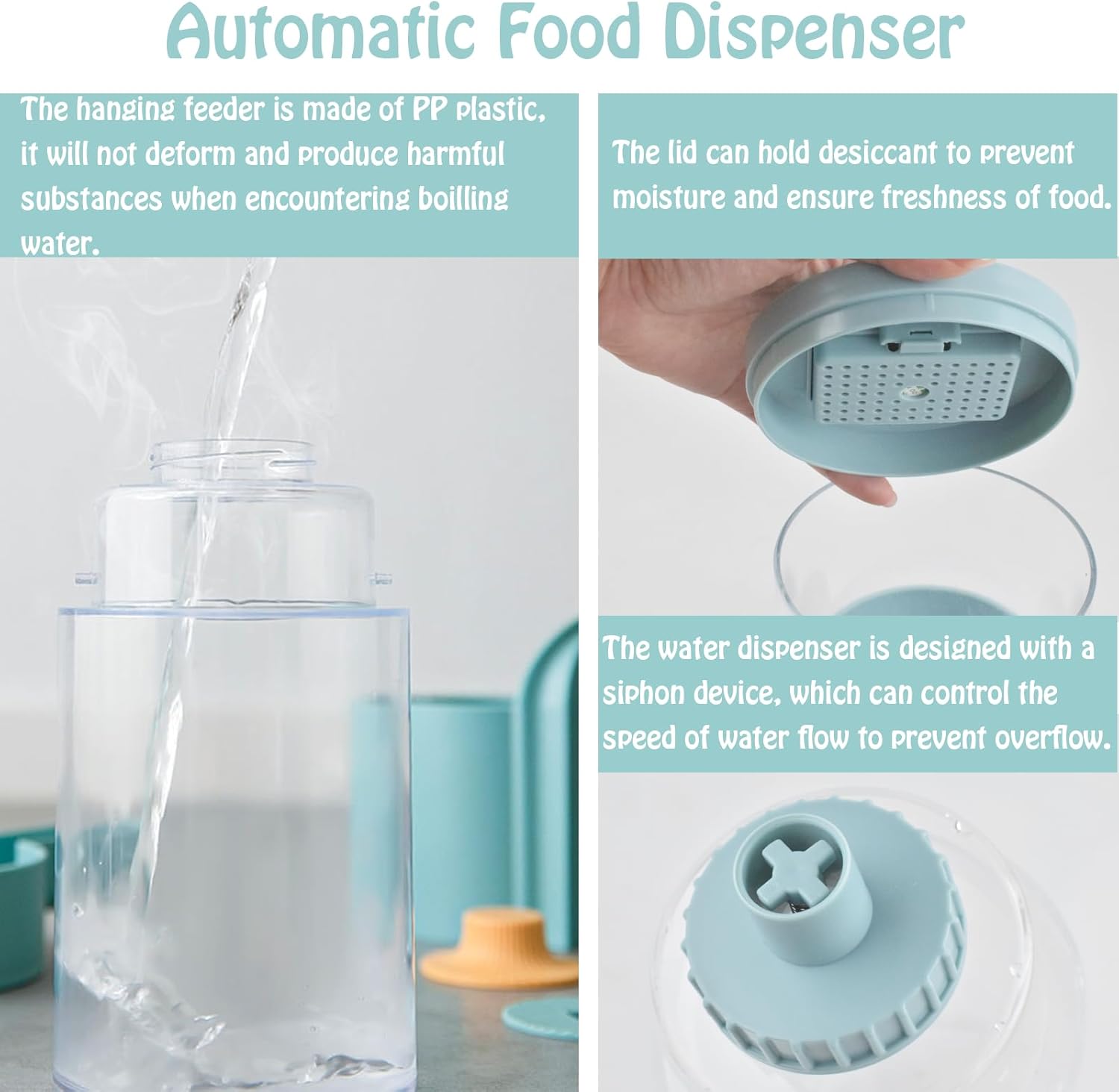 • 【Food Preservation Design】This guinea pig food water dispenser has a new food preservation design, within the lid we made a place can be use to hold the desiccant, which can keep the pet's food fresh and protect the pet's health. Detachable design, so you don't have to remove the whole unit for cleaning, easy to clean.