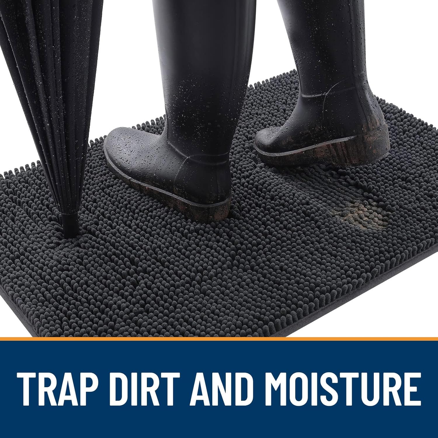 OLANLY Dog Door Mat for Muddy Paws 36x24, Absorbs Moisture and Dirt, Absorbent Non-Slip Washable Doormat, Quick Dry Chenille Mud Mat for Dogs, Entry Indoor Entryway Carpet for Inside Floor, Dark Grey