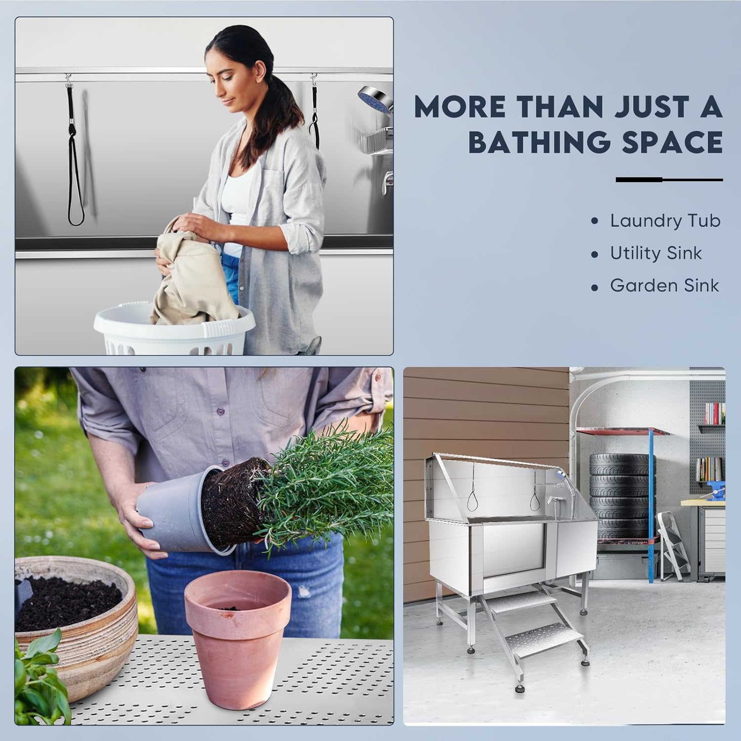 • 🐶Wide Application - Pet grooming tub for large dogs has adjustable hot and cold water control faucet, this pet dog shower sink station is particularly suitable for pet beauty shops of all sizes for pet bath. Wide Application for home commercial animal grooming wash care, wash tub for garden or laundry, and more in extra use waiting for you