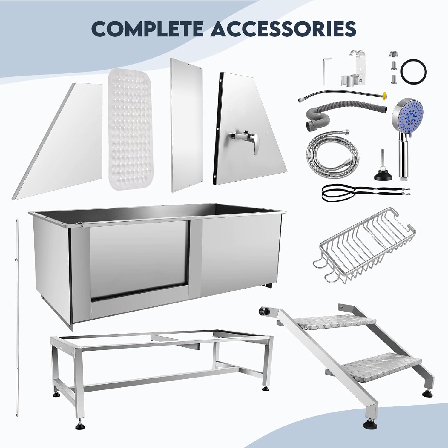 • 🐈Shampoo Rack & Shower - This dog grooming tub is equipped with multi-function high-pressure faucet which could much efficiently shower and clean up this dogs and stainless steel shampoo rack for placing the bath dew and other necessaries shower items, 2 dog leashes is fexible for fixing when washing dogs