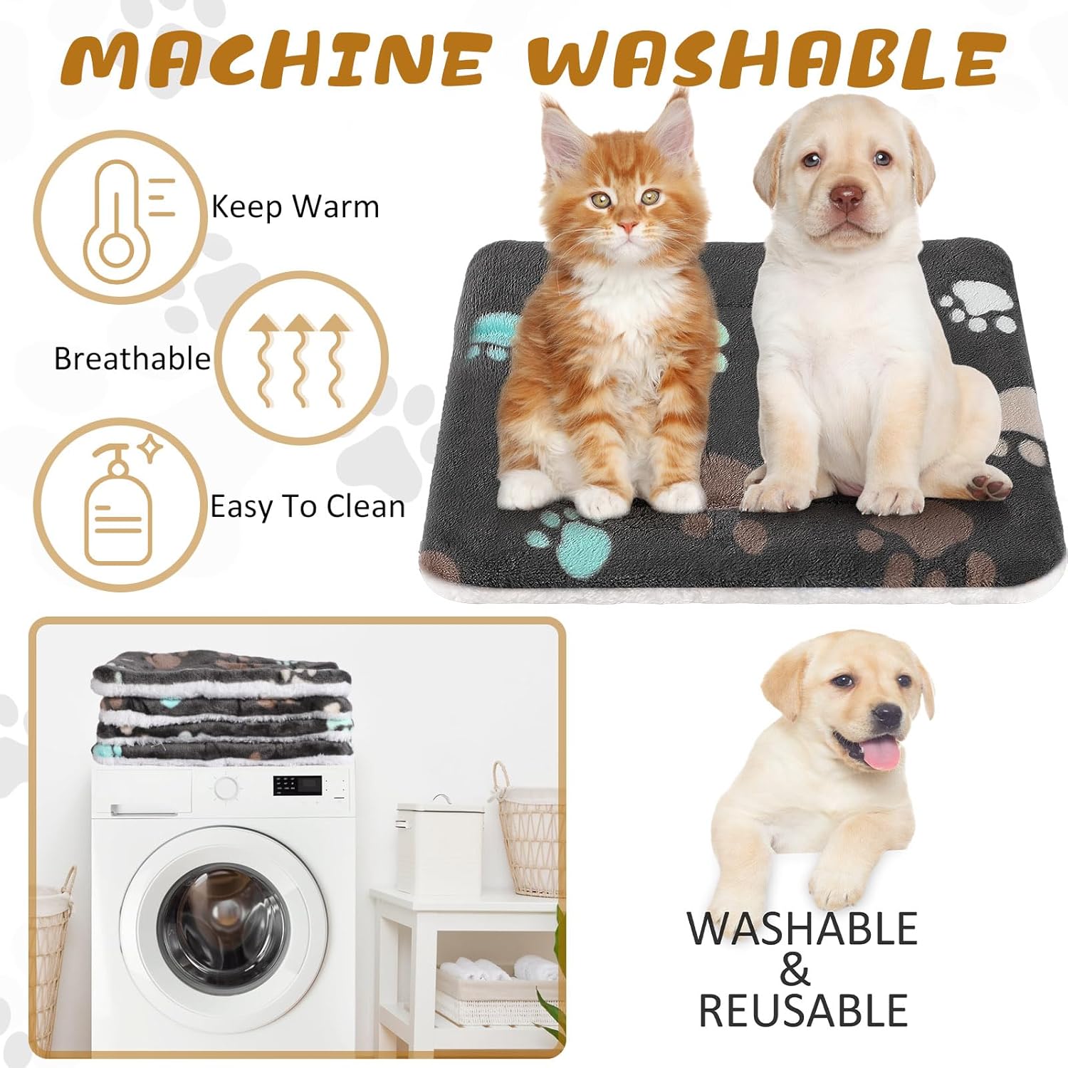 • Cute Design: these soft washable dog mats are designed with paw pattern in same colors, cute and adorable, bright and colorful, which will add some beauty to your dog crates and kennels