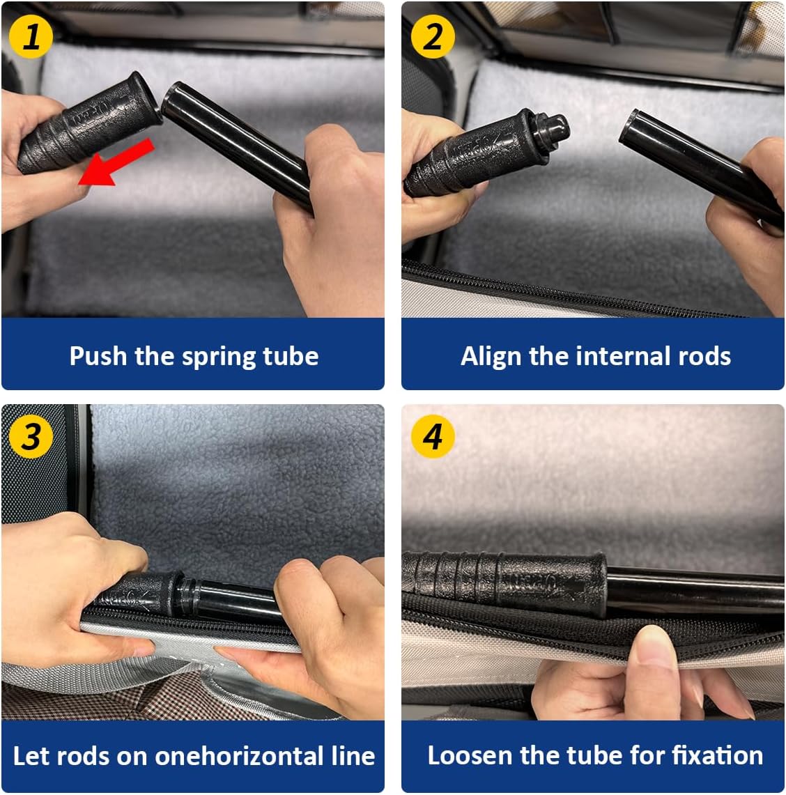 • SAFETY DESIGN- Each access has a zipper lock to prevent cats from escaping. On the side have seatbelt loops, can fix the carrier in the car. The internal metal support structure may also provide good protection for pets.
