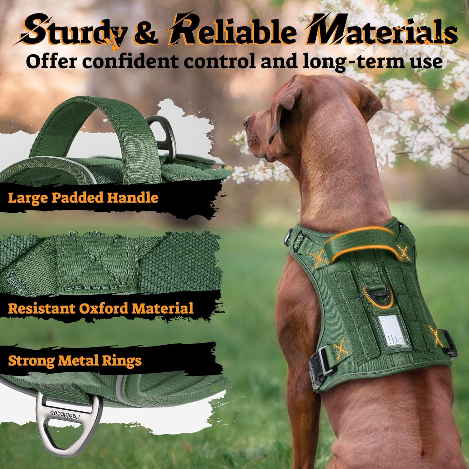 rabbitgoo Dog Harness Small Sized No Pull, Tactical Service Pet Vest with Molle and Control Handle, Adjustable and Reflective Military Harness for Easy Walking and Training, Green, S