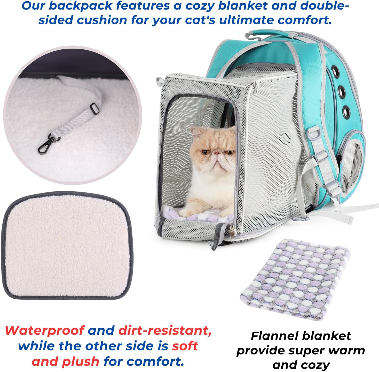 Lollimeow Cat Carrier Backpack, Bubble Expandable Backpack Carrier, Pets and Small Dogs,Airline-Approved, Designed for Travel, Hiking, Walking & Outdoor Use (Square Back Expandable-Green)