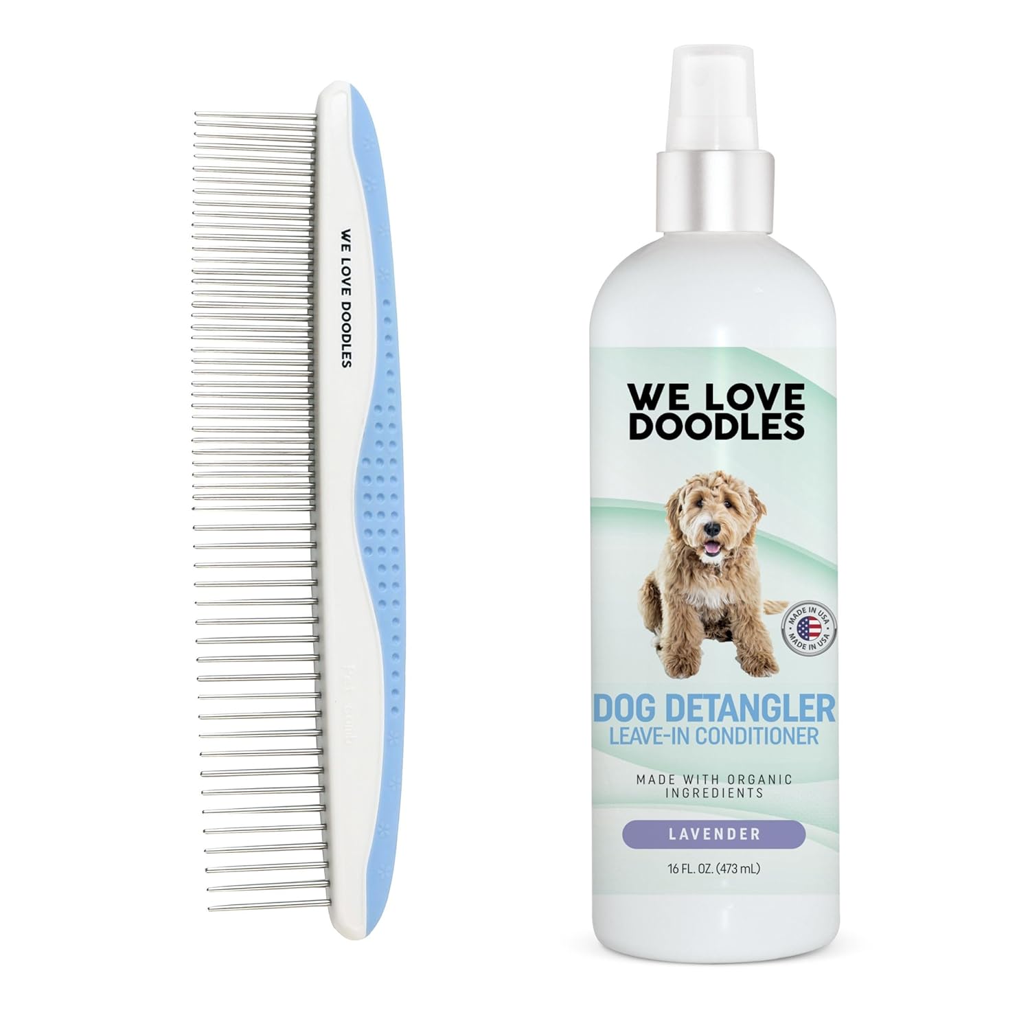 We Love Doodles Large Metal Dog Grooming Comb & Dog Detangler Spray - Removes Tangles & Matts, Dematting Pet Combs, Detangler For Matted Hair, Dog Detangling Spray, Dematting Spray & Tangle Remover