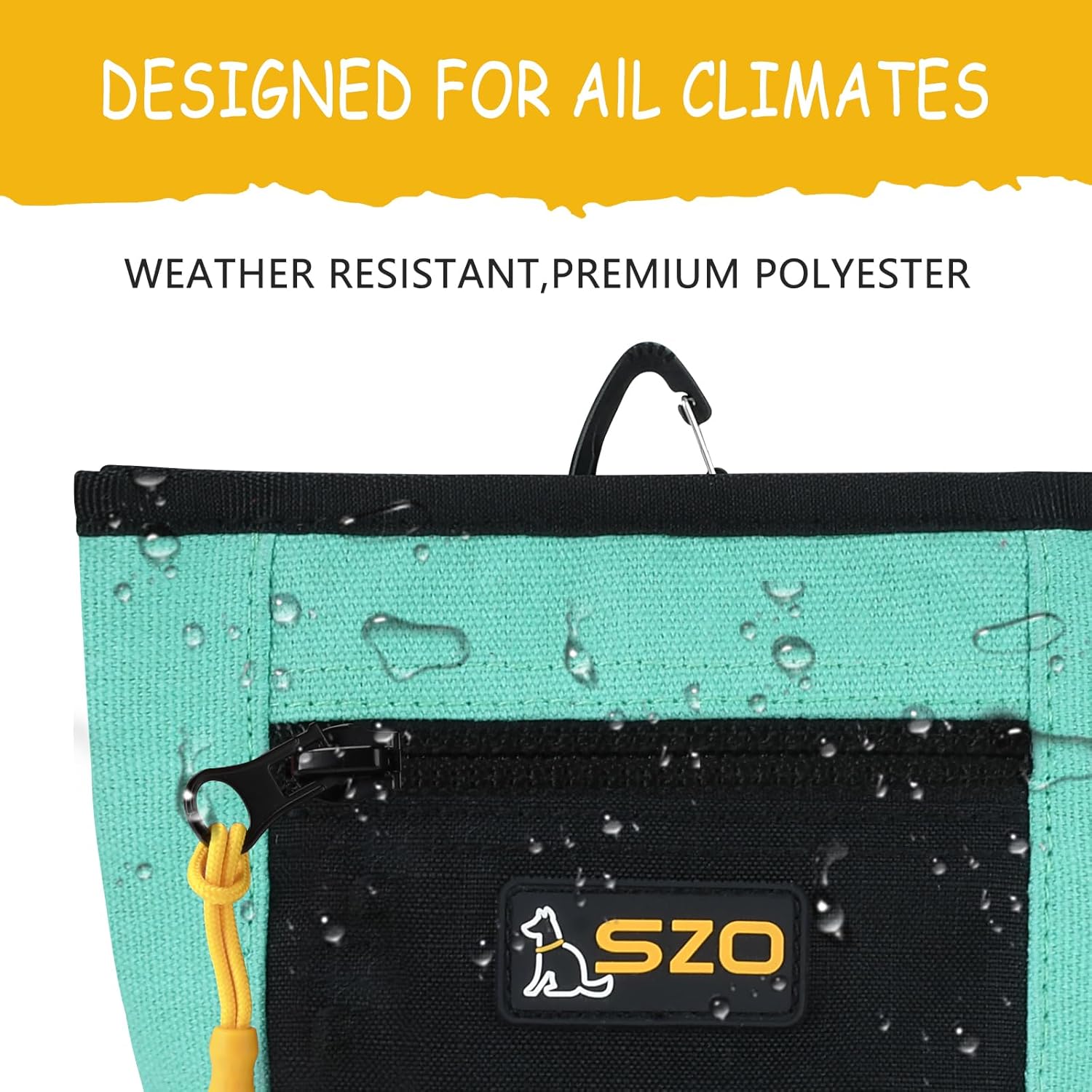 • Easy To Use — SZO dog treat pouch is designed to fit your everyday use when training your pets. It features a magnetic closure, allowing quick and one-handed access to your pet's favorite treats. And a front zipper pocket to secure personal items!