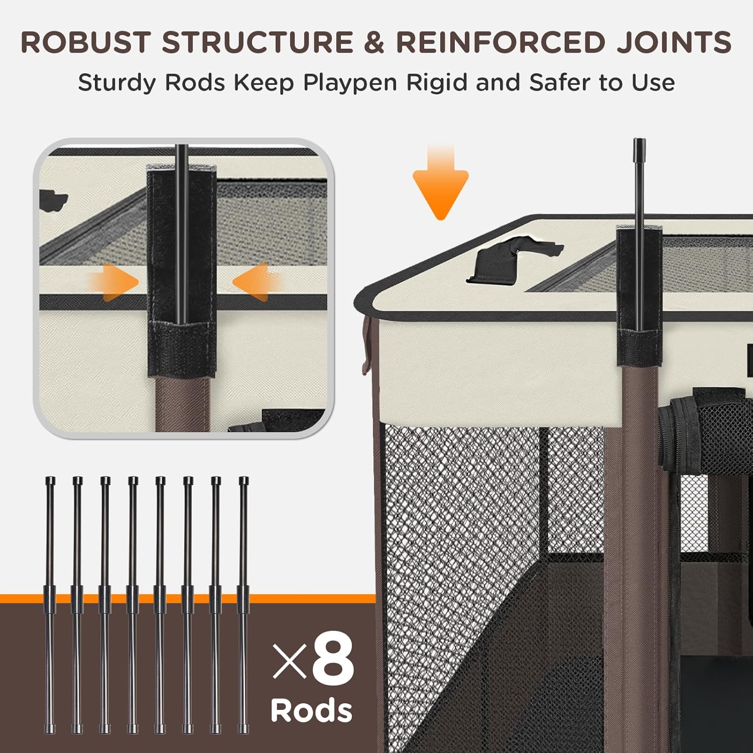 • Safety & Durability: Kitten playpen is made of high-quality 600D Oxford cloth, which is wear-resistant, soft to the touch, and odorless. We have reinforced the joints and corners of the dog playpen to ensure the safety of your pet. (The portable pet playpen is lightweight, and you can place heavy objects inside the pet playpen to increase stability, but it is not suitable for use with aggressive pets)