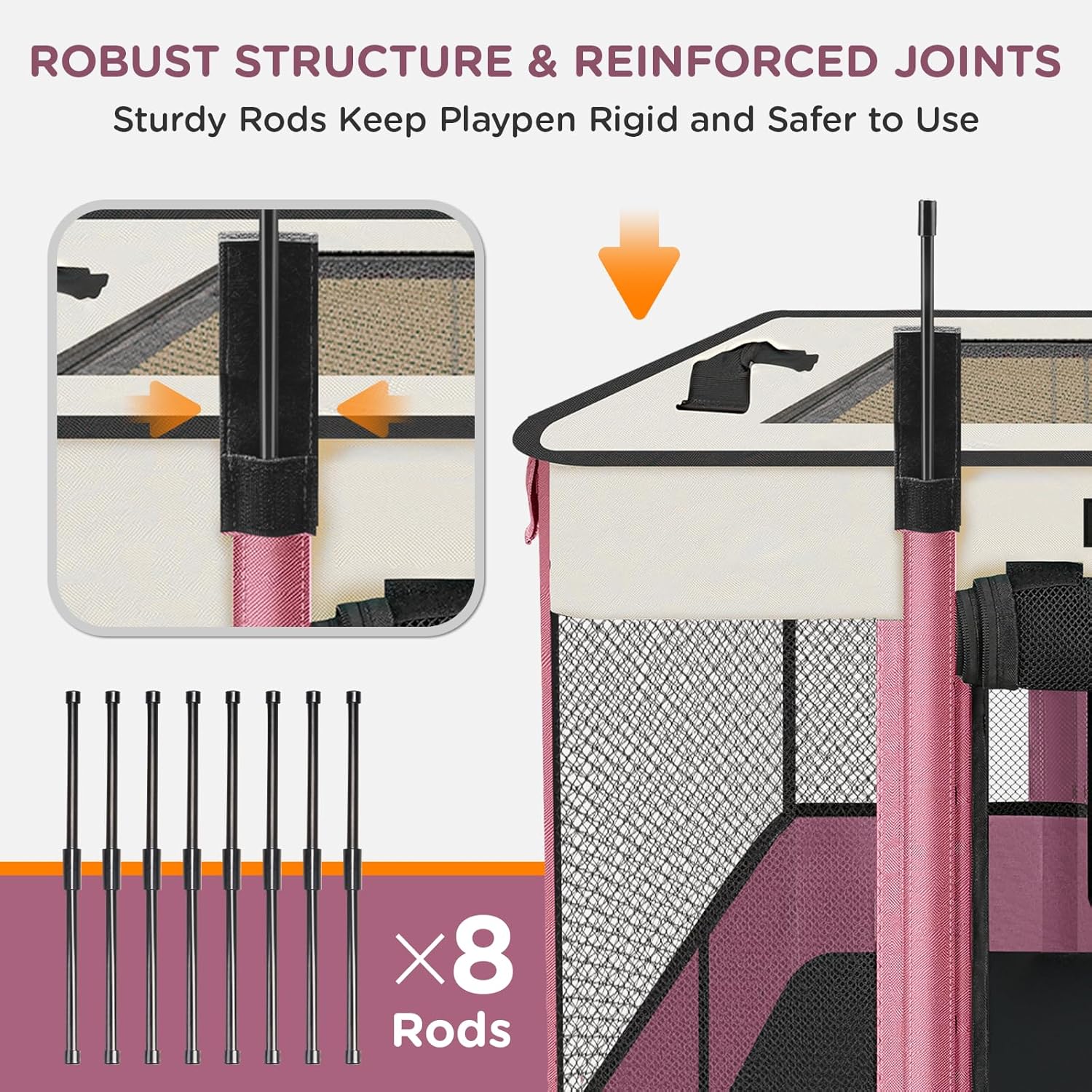 • Portable Design: Assembly can be completed in 3 minutes by unfolding the portable pet playpen and inserting the support rods. (You can check our video or user manual for specific installation and folding methods.)Portable dog cat playpen can be folded when not in use, suitable for indoor, outdoor, travel, camping, and more.