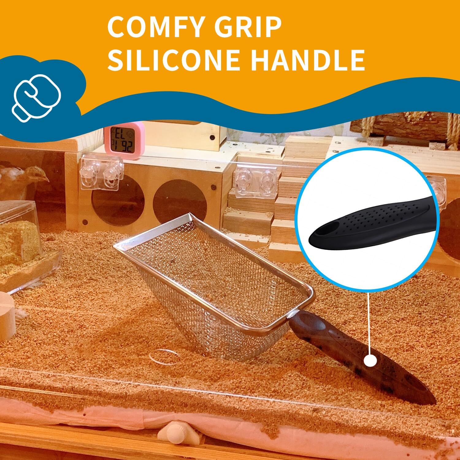• The sand litter scoop is made of high-quality stainless steel mesh。Ergonomically designed,the handle is made of top-grade material,comfortable and non-slip.