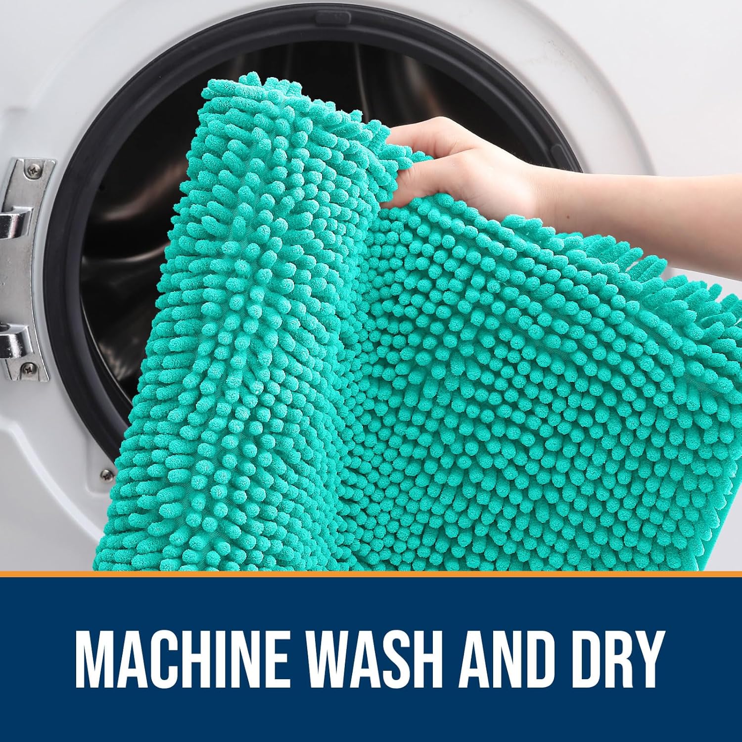 OLANLY Dog Door Mat for Muddy Paws 70x24, Absorbs Moisture and Dirt, Absorbent Non-Slip Washable Doormat, Quick Dry Chenille Mud Mat for Dogs, Entry Indoor Entryway Carpet for Inside Floor, Teal