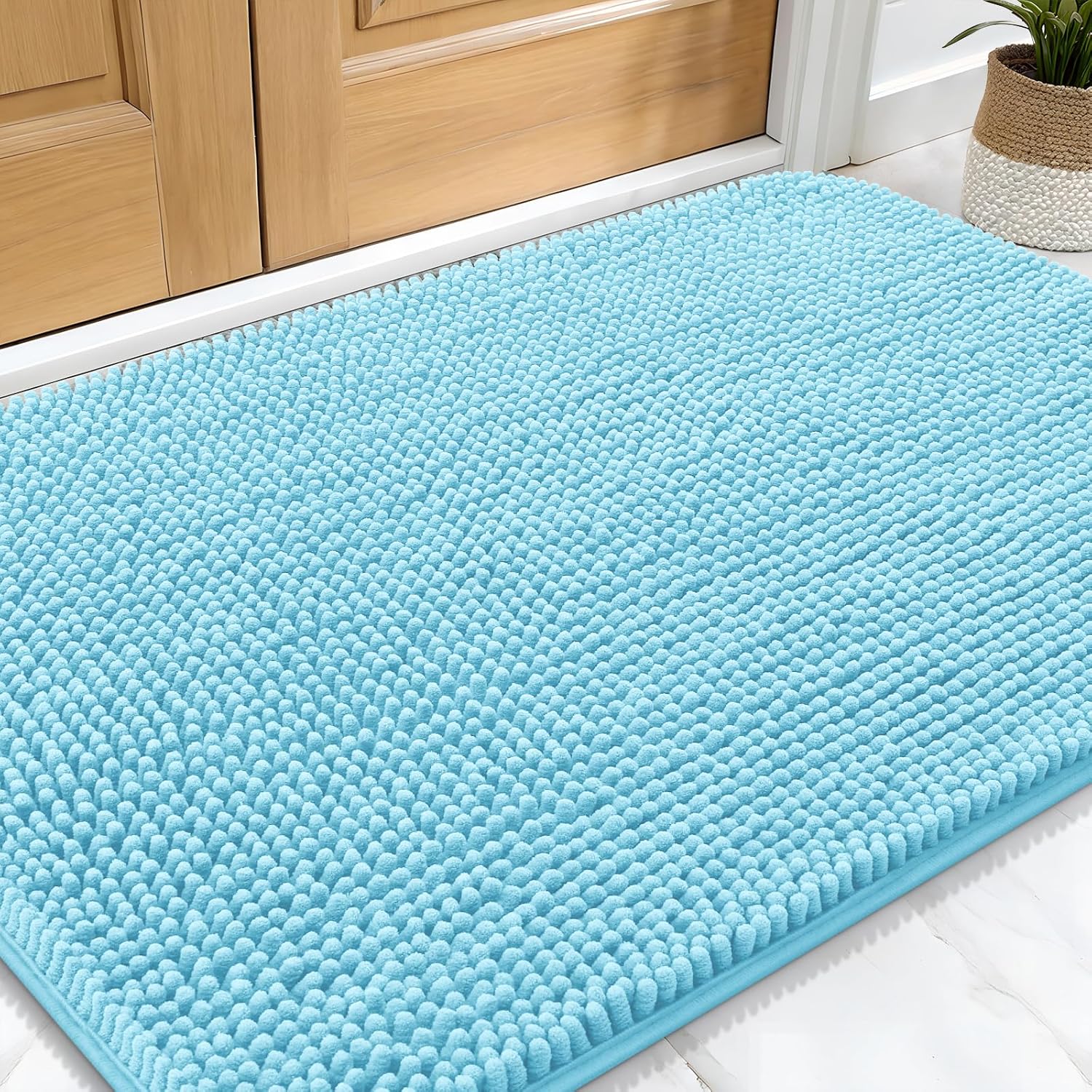 OLANLY Dog Door Mat for Muddy Paws 30x20, Absorbs Moisture and Dirt, Absorbent Non-Slip Washable Doormat, Quick Dry Chenille Mud Mat for Dogs, Entry Indoor Entryway Carpet for Inside Floor, Blue