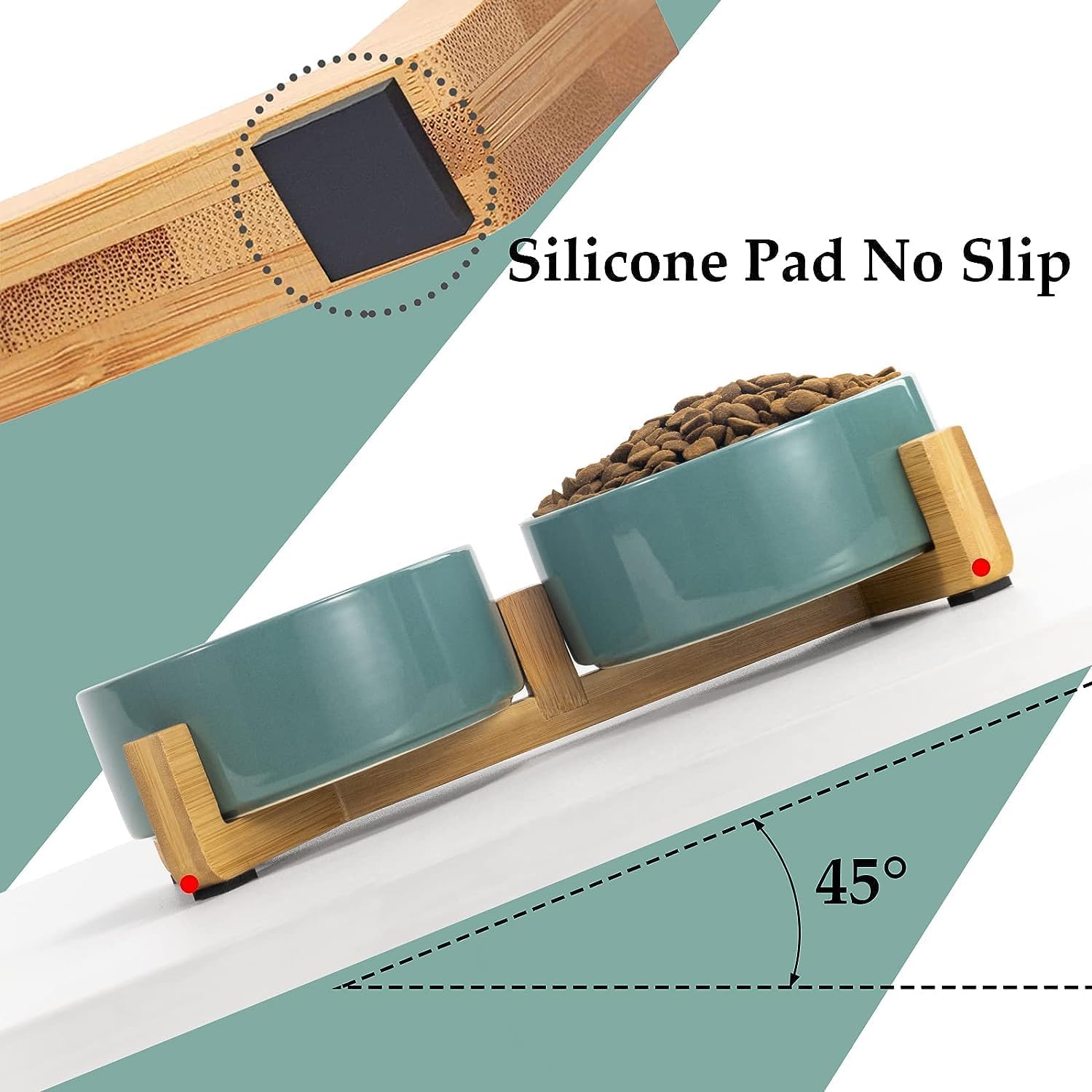 • [Double Bowl Design]:One dog bowl for food and one for water, Each ceramic cat bowl has a Unique wooden stand, raising the dishes closer to your pet for more comfortable eating