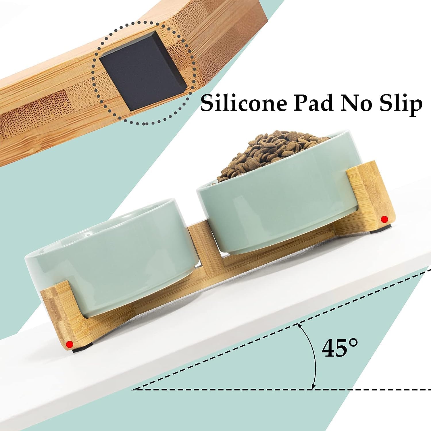 • [Double Bowl Design]:One dog bowl for food and one for water, Each ceramic cat bowl has a Unique wooden stand, raising the dishes closer to your pet for more comfortable eating