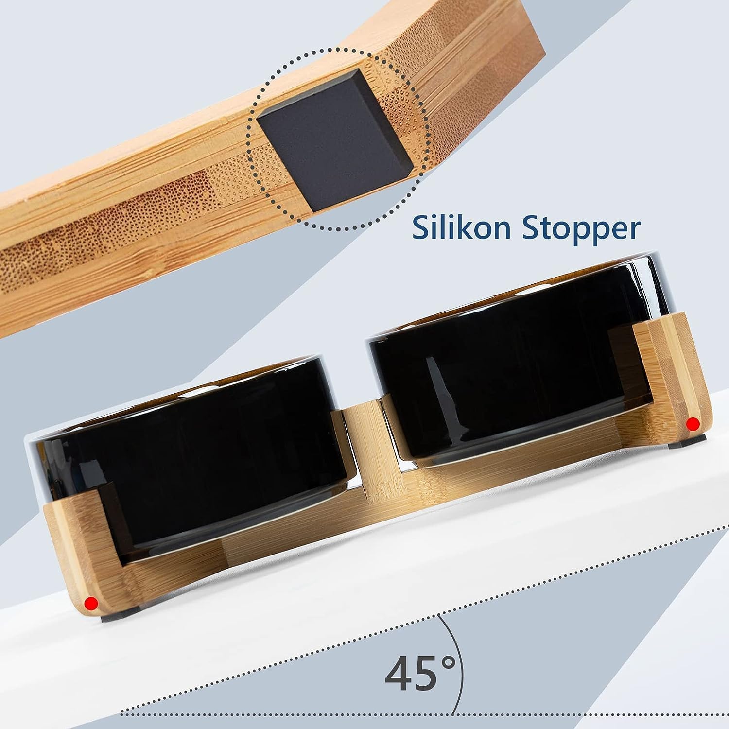 • [Double Bowl Design]:One dog bowl for food and one for water, Each ceramic cat bowl has a Unique wooden stand, raising the dishes closer to your pet for more comfortable eating