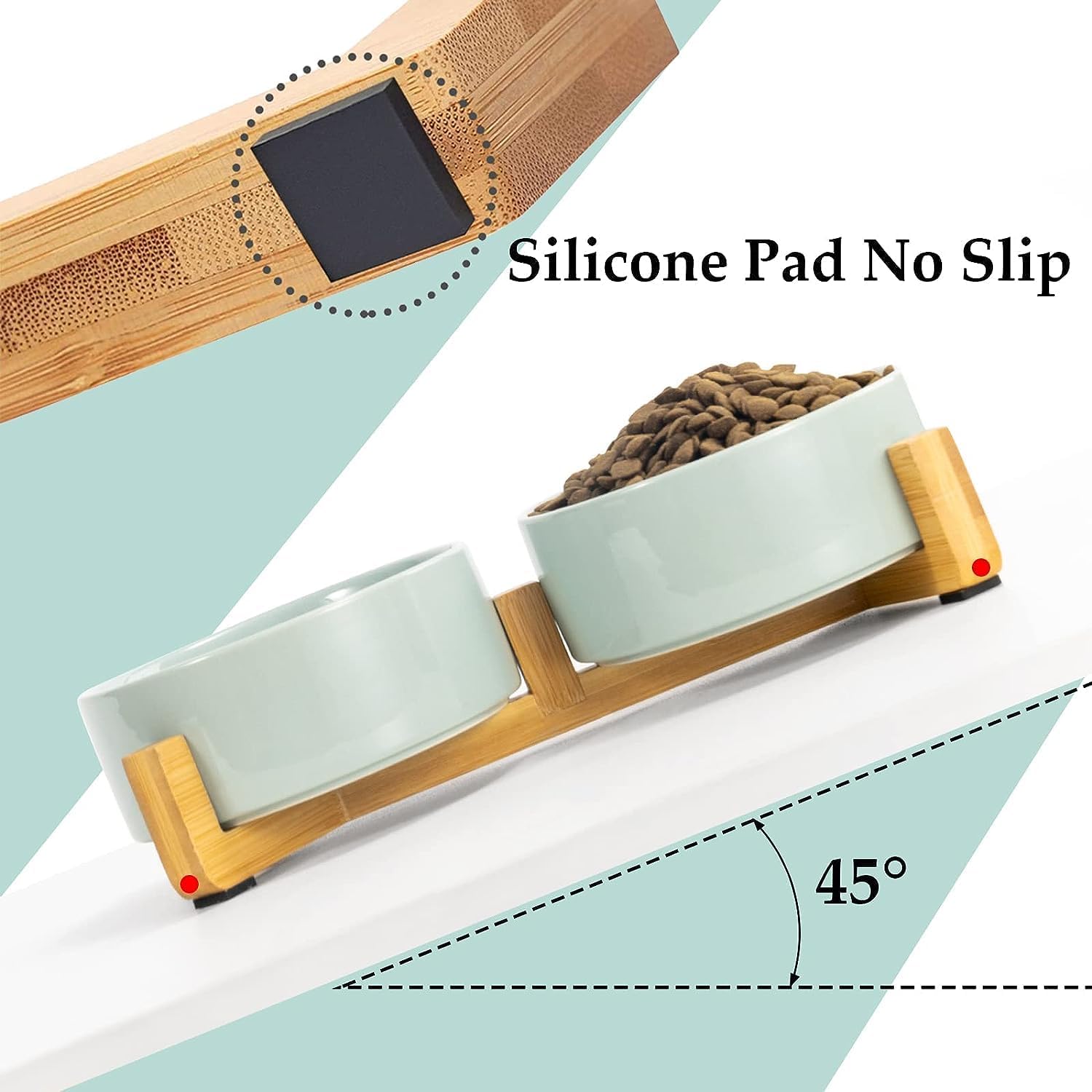• [Double Bowl Design]:One dog bowl for food and one for water, Each ceramic cat bowl has a Unique wooden stand, raising the dishes closer to your pet for more comfortable eating