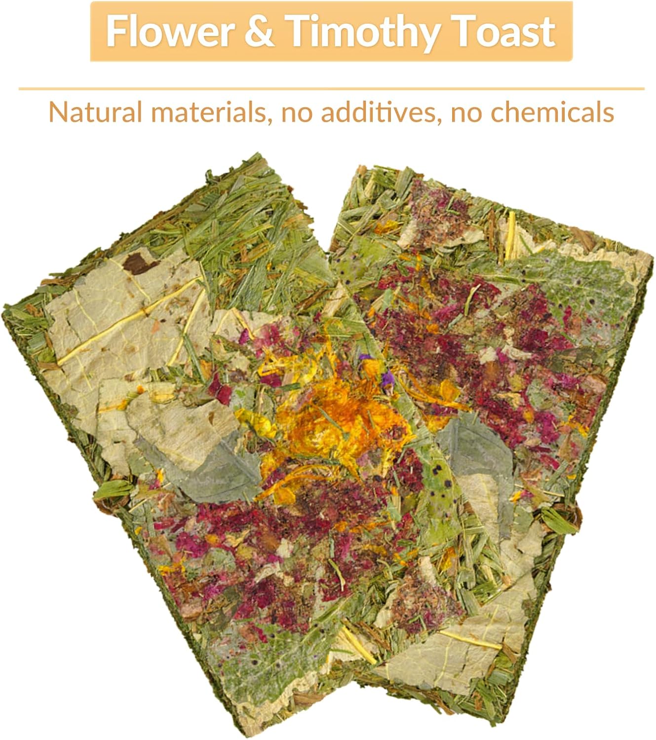 - 【List of Packages for Bunny Treats】This bunny treats set contains: 2 x Dandelion Timothy Grass Toast, 5 x Sweet Bamboo Sticks, 110g Apple Sticks, 5 x Timothy Grass Sticks, 10 x Timothy Grass Flower Sticks, and 4 x Timothy Grass Cakes. The total quantity is about 50-60 pieces, enough to meet a hamster's long-term chewing needs.
