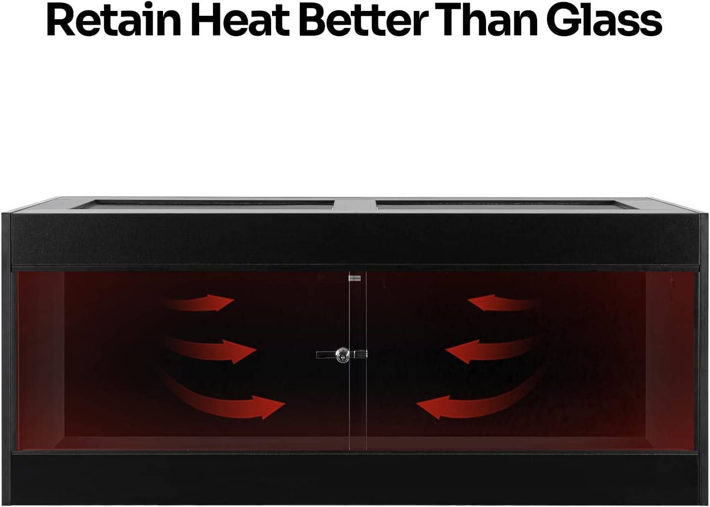 • 【Retain Heat Better Than Glass】Unlike glass or screen enclosures, the thickened wooden reptile enclosure provides excellent heat insulation, more in line with natural reptiles environment. Black and non-reflective surfaces reduce stress in your pets.