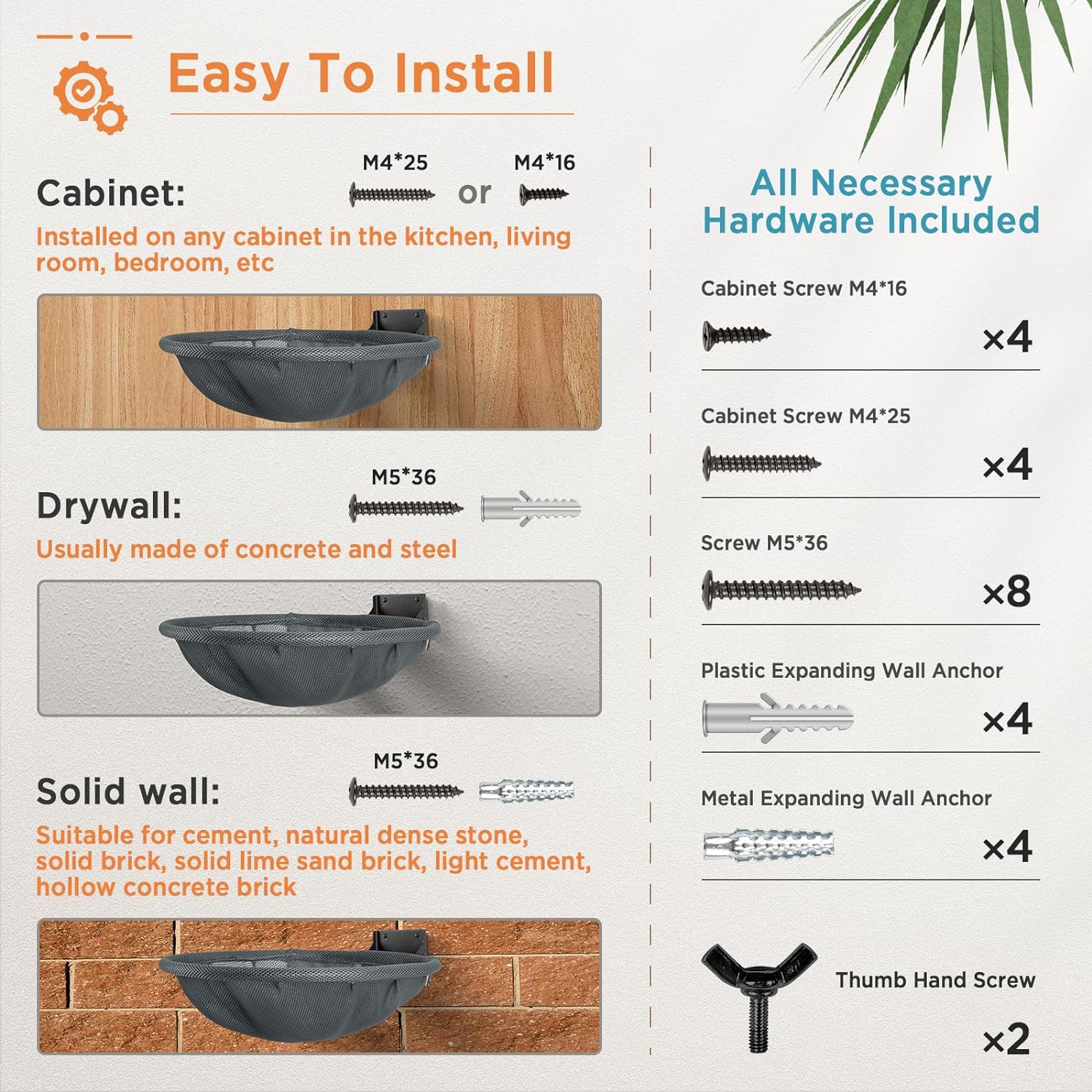 • Easy to Disassemble and Clean: JUNSPOW's Wall Mounted Cat Hammock is a removable design with a detailed installation manual that makes assembly and disassembly simple. The fabric cover can be quickly removed for cleaning and is easily cleaned with a mild detergent.