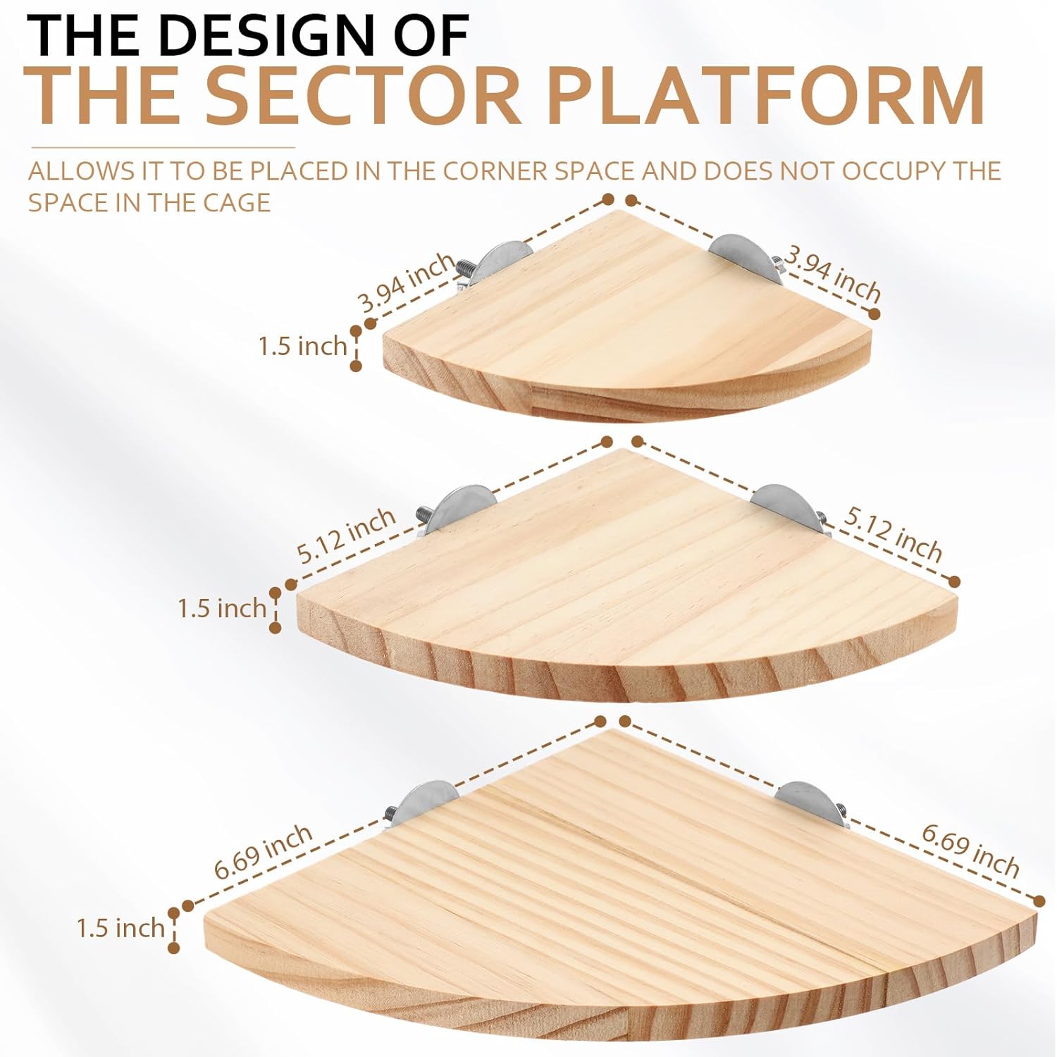 Wettarn 6 Pcs Bird Perch Platform Bird Corner Parrot Perch Corner Wooden Stand Sector Playground Cage Accessories Shelf for Parakeet Conure Cockatiel Budgie Gerbil Rat(Assorted Sizes)
