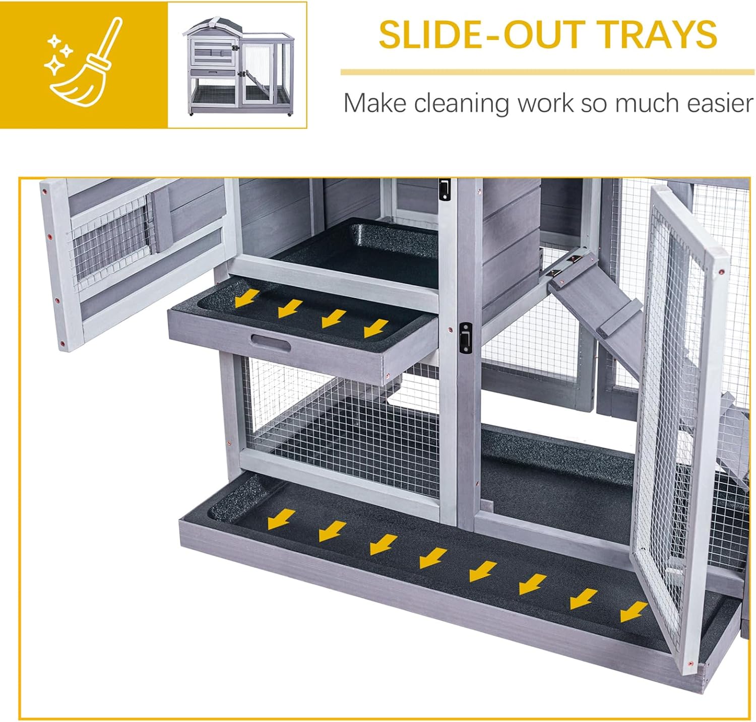 • 🐇【Effortless Cleaning】- The large rabbit hutch includes a removable tray, simplifying cleanup. Slide out the tray, dispose of waste, and rinse it clean – maintaining a hygienic environment for your pets has never been easier.