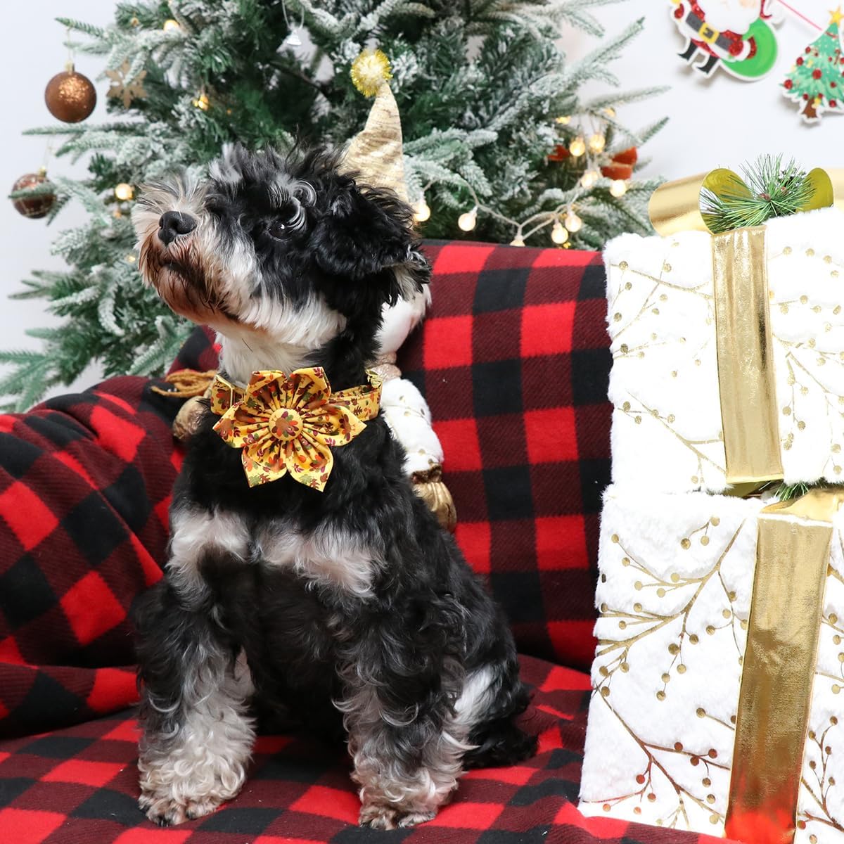 Lionet Paws Thanksgiving Day Dog Collar with Flower, Dogs Flower Collar with Metal Buckle for Dogs, Adjustable Comfortable Dog Collars Girl, M, Neck 13.5-22 in