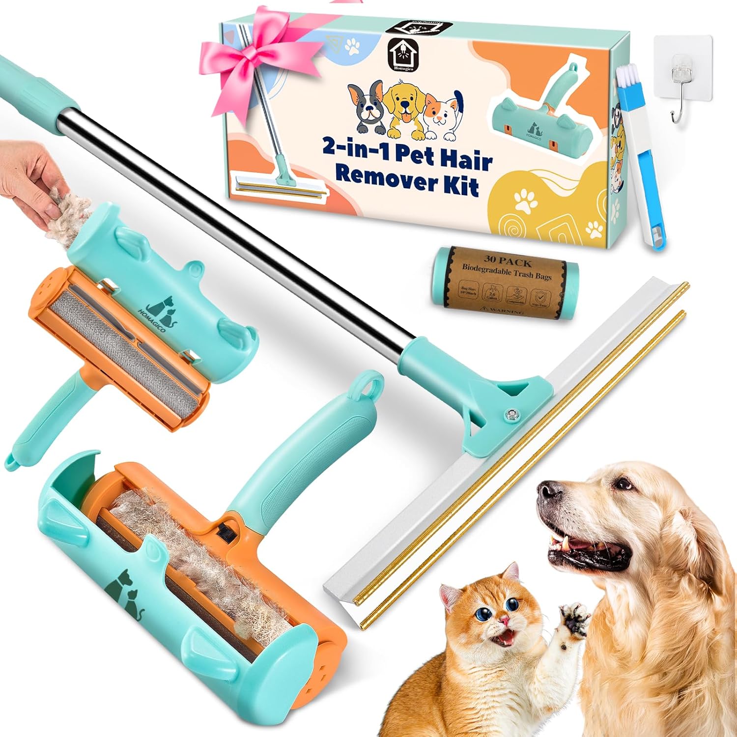 - ใ๐๐ฎ๐ฅ๐ญ๐ข๐๐ฎ๐ง๐๐ญ๐ข๐จ๐ง๐๐ฅ ๐๐๐ญ ๐๐๐ข๐ซ ๐๐๐ฆ๐จ๐ฏ๐๐ซ ๐๐๐ญใThis pet hair remover includes two cleaning tools, a retractable long-handled pet hair carpet rake and a short-handled pet hair roller. It also comes with hooks, garbage bags and a small broom set as brush cleaning tools. This kit is perfect for most household pet hair cleaning needs, making it easy to eliminate pet hair worries.