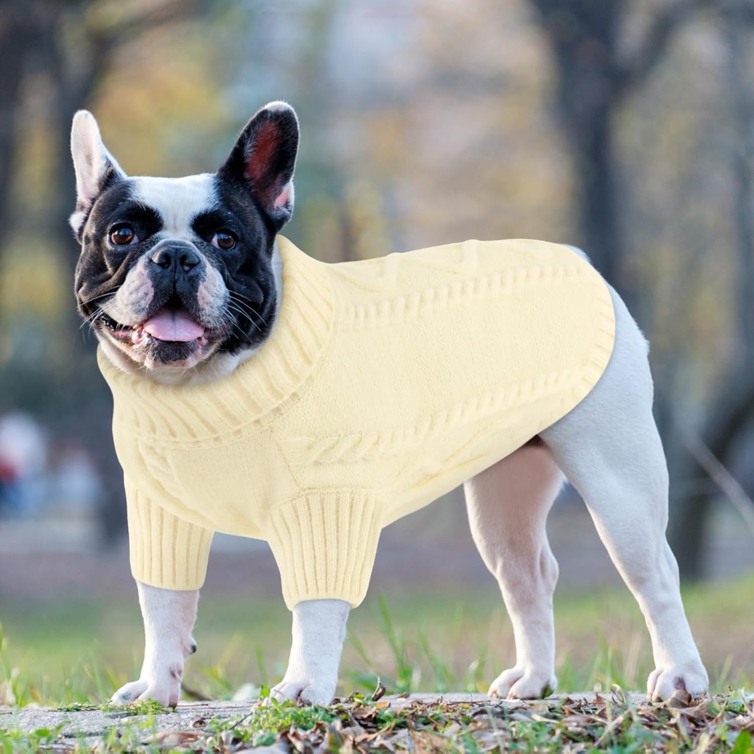 • THICK & WARM KNIT SWEATER: The dog's turtleneck pullover sweater is made of high density acrylic yarn that is comfortable, soft, warm and easy to care. The cable knit sweater is the cute winter clothes for your dog.