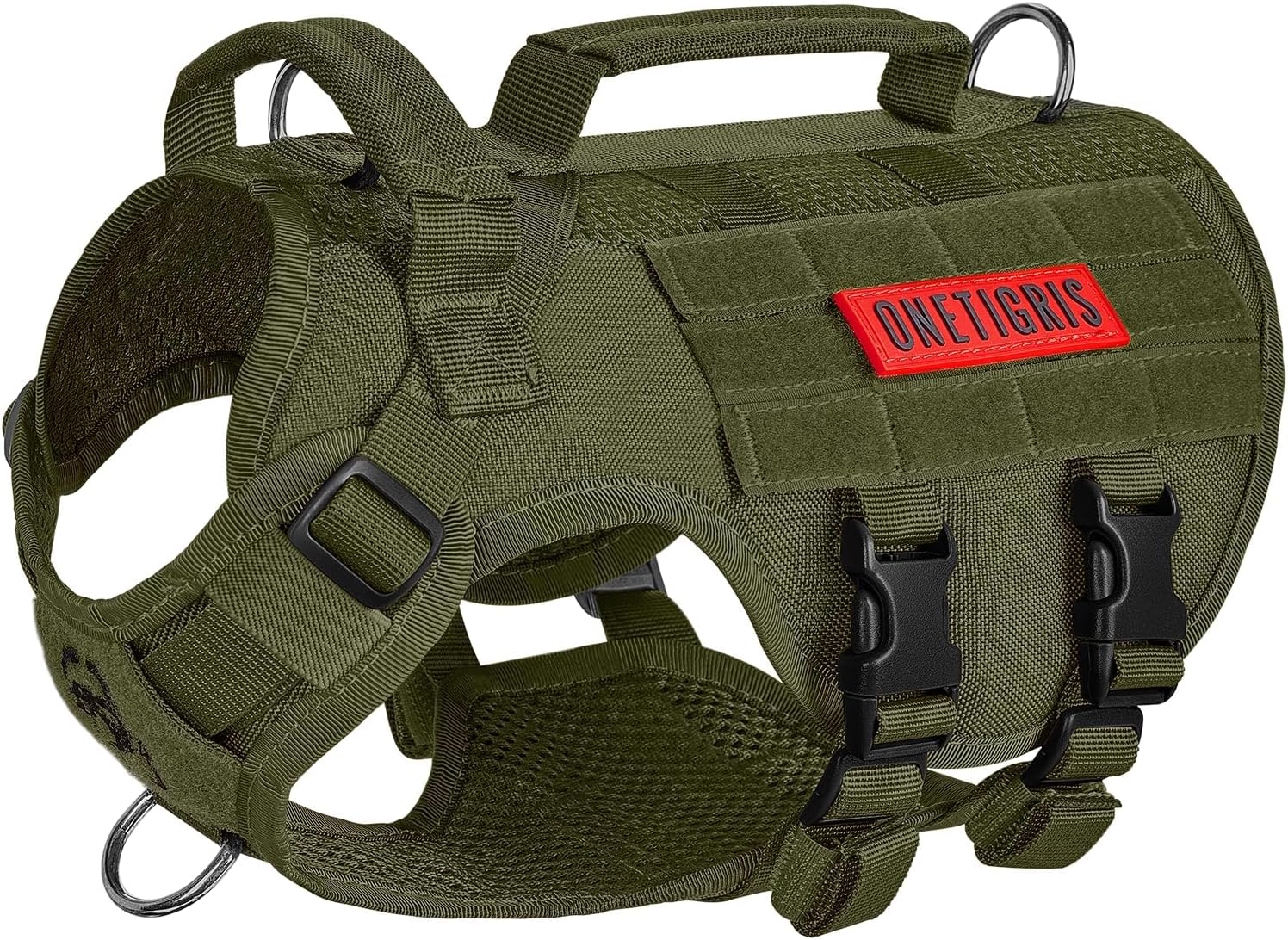 OneTigris Tactical Dog Harness for Small Dogs, No Pull Small Dog Vest Harness Breathable Military Dogs Molle Vests with Handles, Harness for Walking Hiking Training (Green, XS)